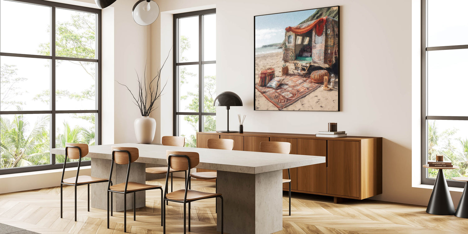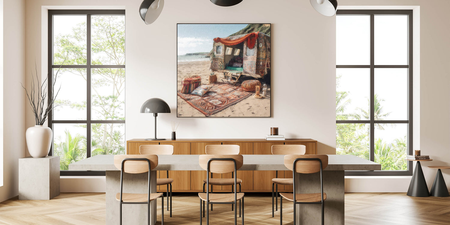 Bohemian Caravan Beach Scene - Vintage Caravan Wall Art