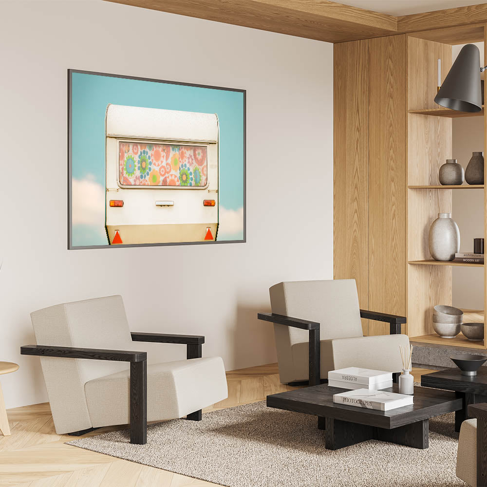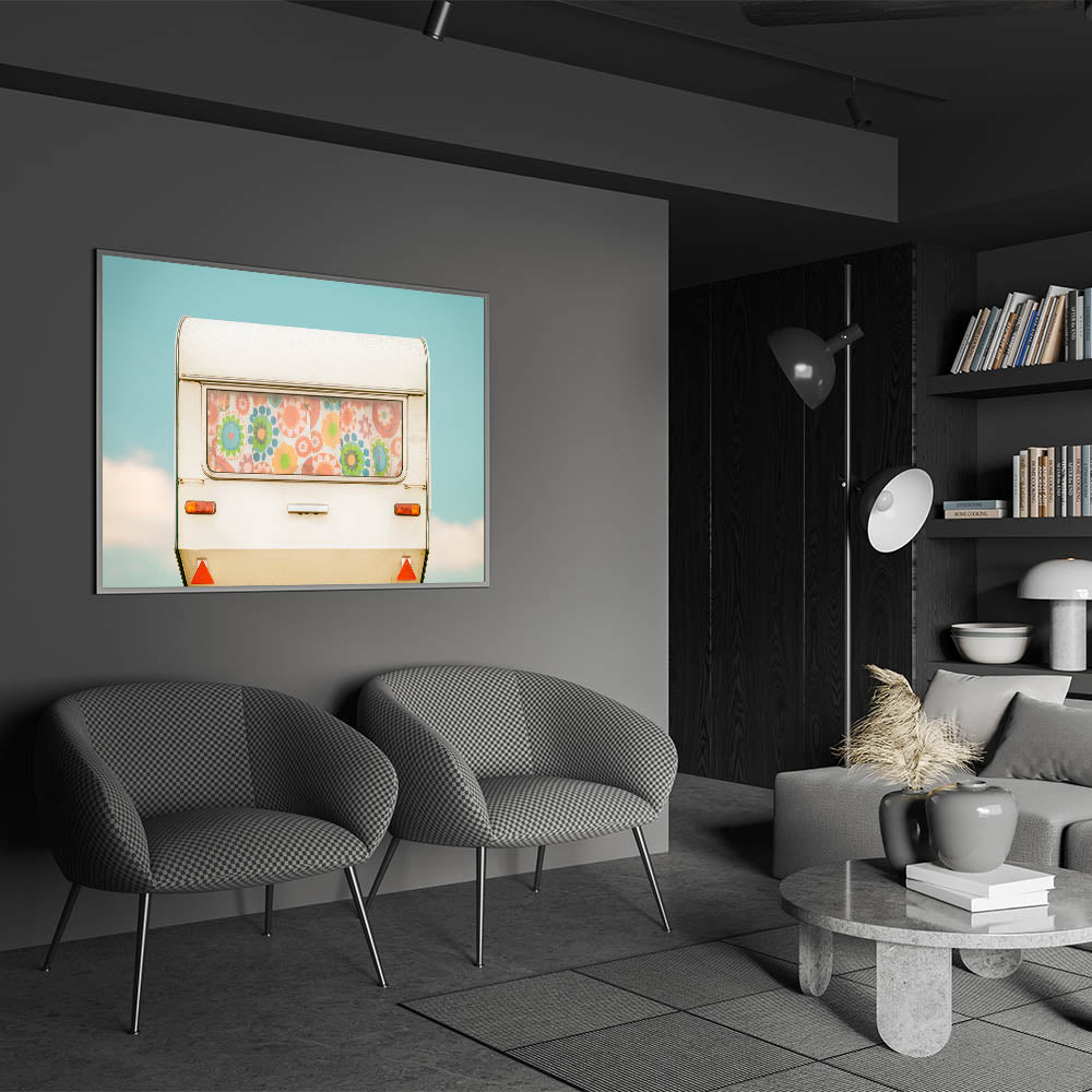 Colorful Retro Camper Curtain - Vibrant Floral Caravan Wall Art Print
