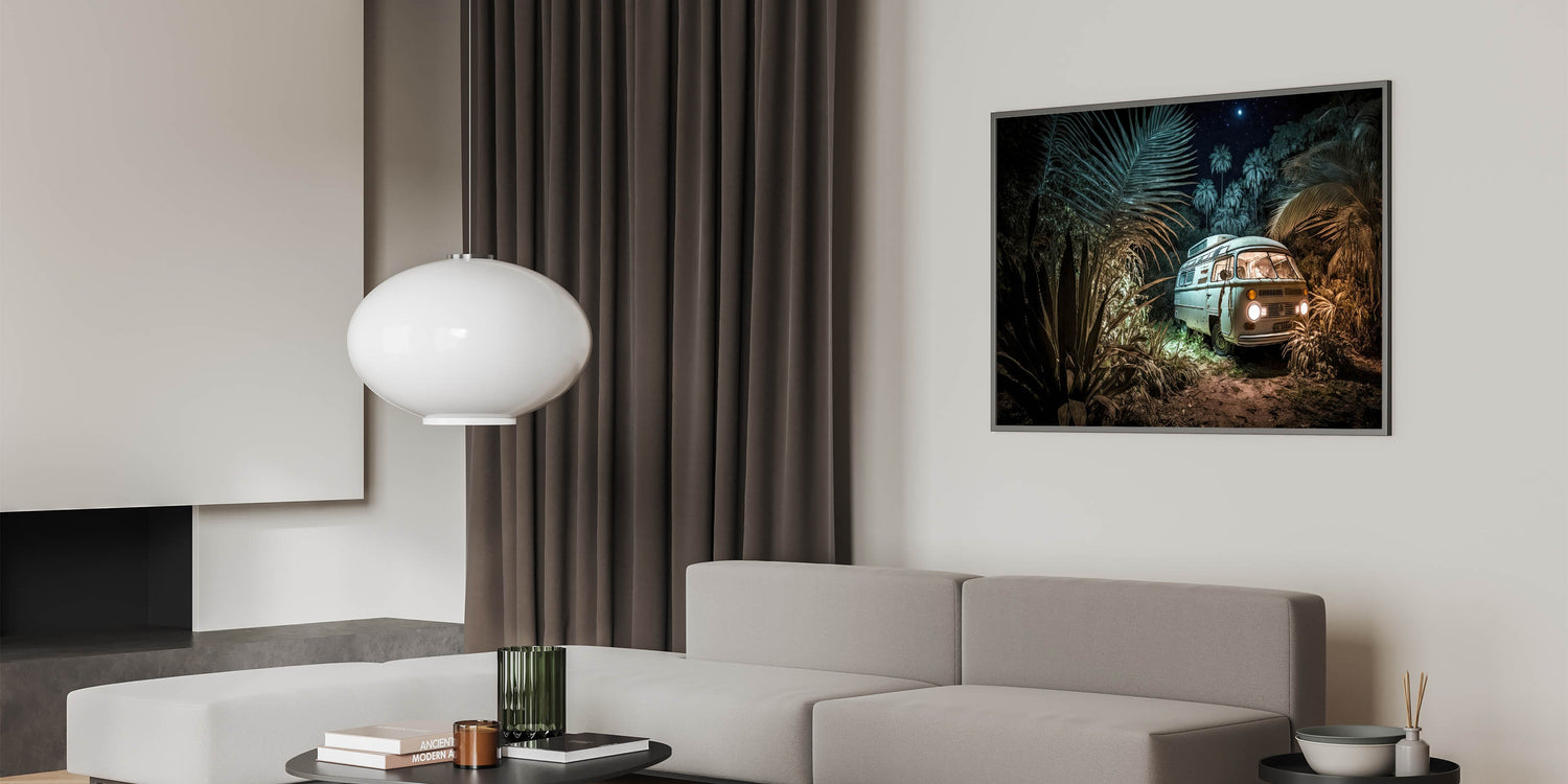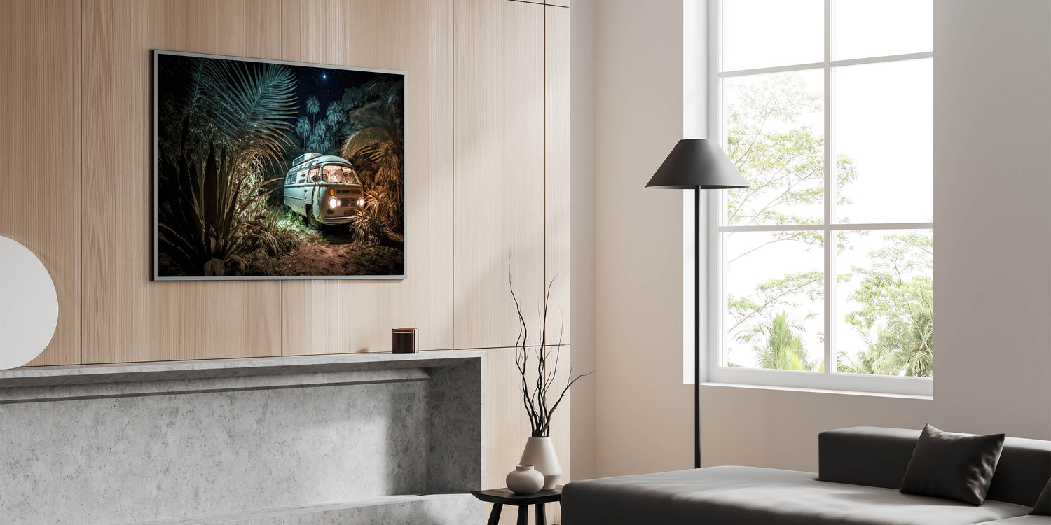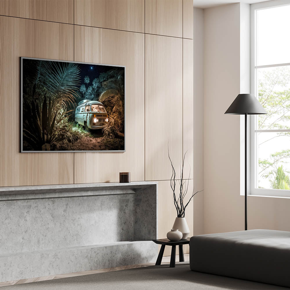 Mystical Jungle Night Camper Van - Enchanting Adventure Wall Art Print