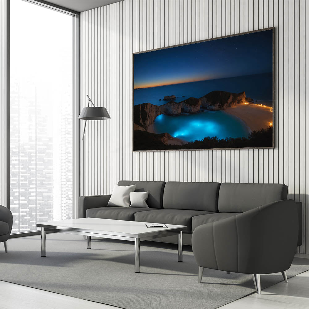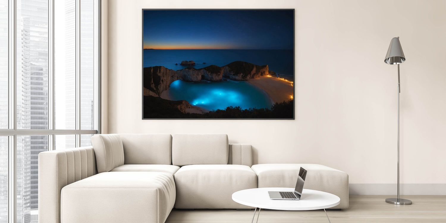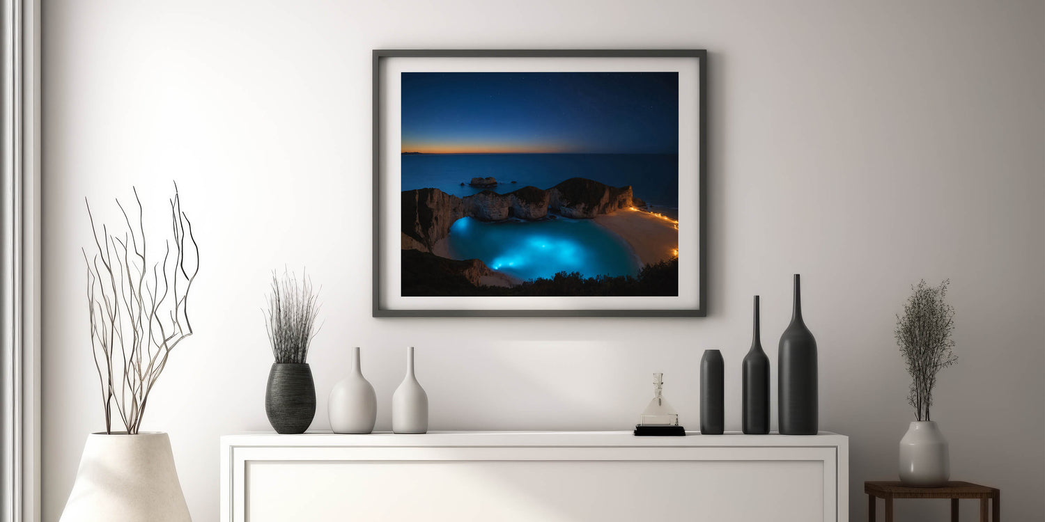 This unique piece of San Juan Wall Decor is the perfect addition to any space, offering a window into the serene and magical coastal beauty of Puerto Rico Coastal Views at night.