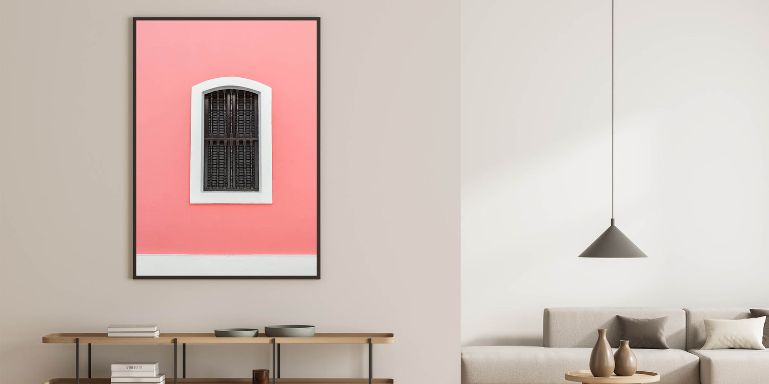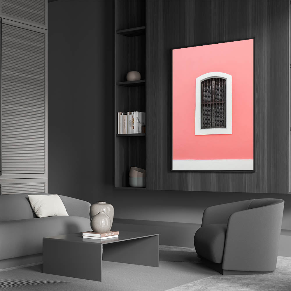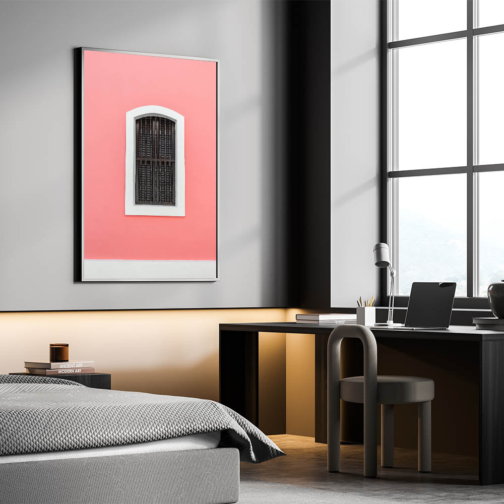 This striking piece of Puerto Rico wall art captures the charm and simplicity of Old San Juan’s historic architecture. Featuring a beautifully crafted window set against a soft pink wall, this minimalist artwork offers a fresh and modern take on Puerto Rican scenery. The contrast between the iron window grill and the pastel background creates a balanced, serene composition, perfect for adding a touch of elegance to any space.