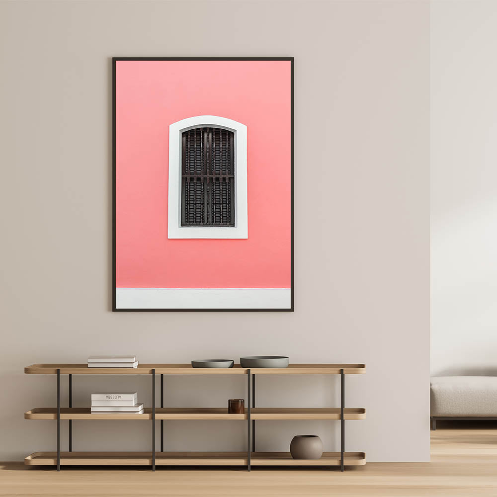 San Juan Wall Decor - Puerto Rican Window on Pink Wall Minimalist Art