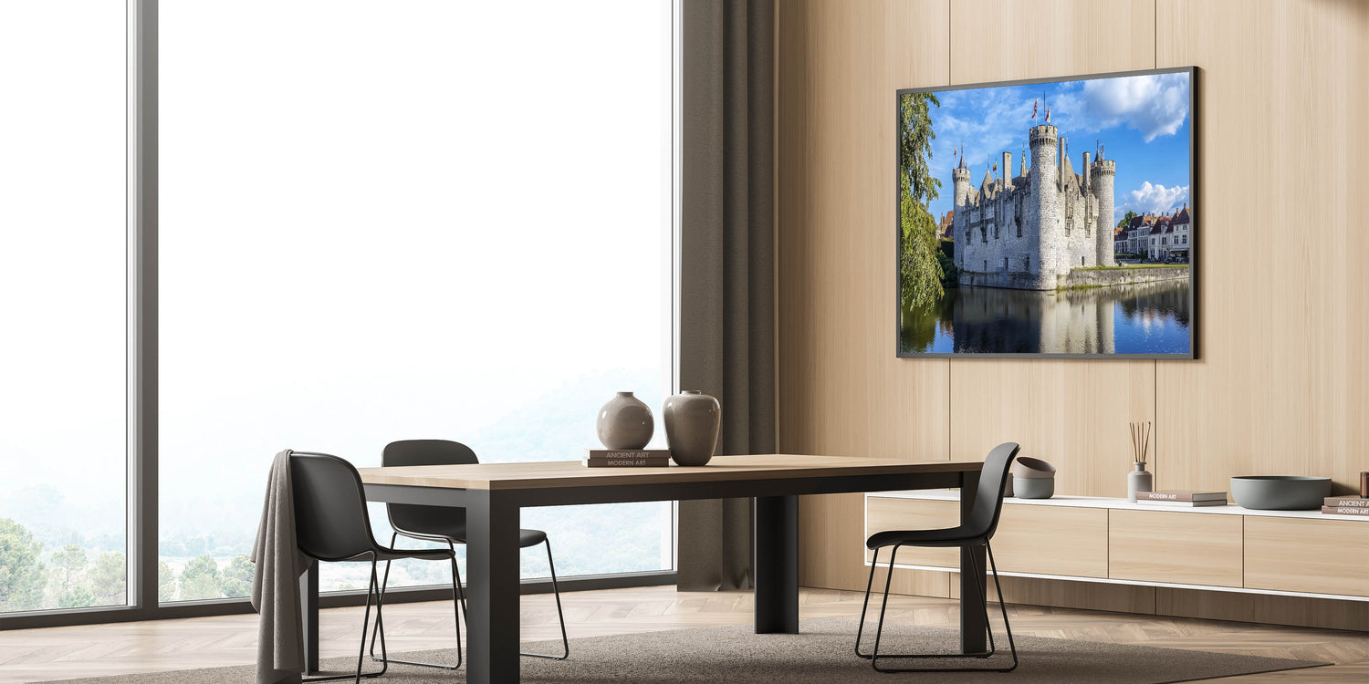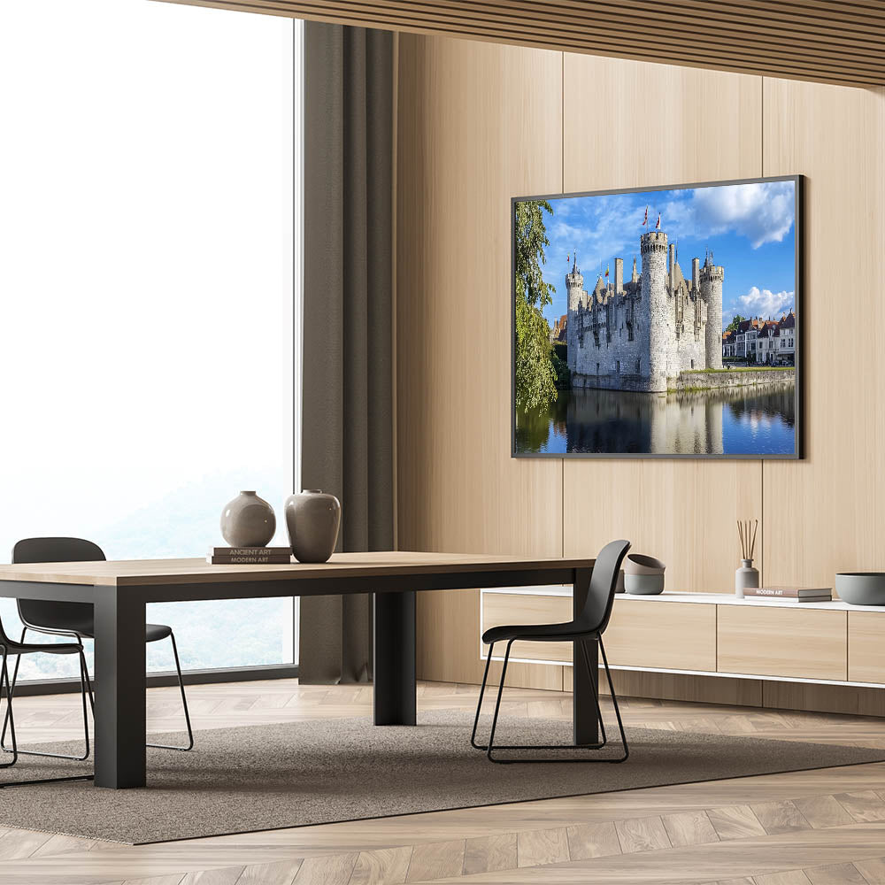 Discover the charm of this historic water castle artwork, featuring a magnificent European fortress surrounded by calm waters and framed by a serene sky. The intricate stonework and timeless design of this unique castle make it a captivating piece for any space. The reflection in the water and the vibrant details bring the scene to life, creating a perfect harmony between nature and architecture.