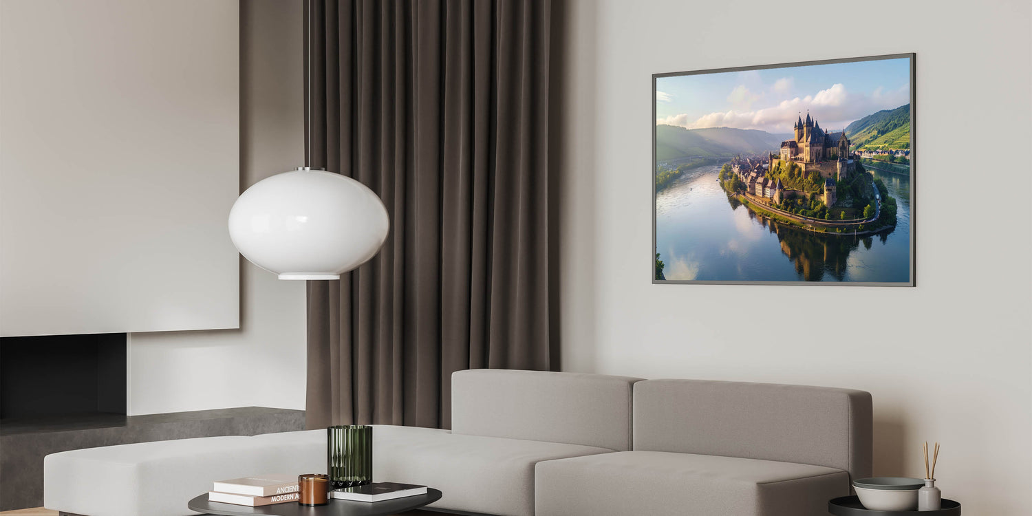 • High-definition printing technology ensures every detail, from the castle’s stonework to the gentle ripples on the river, is captured with exceptional clarity.