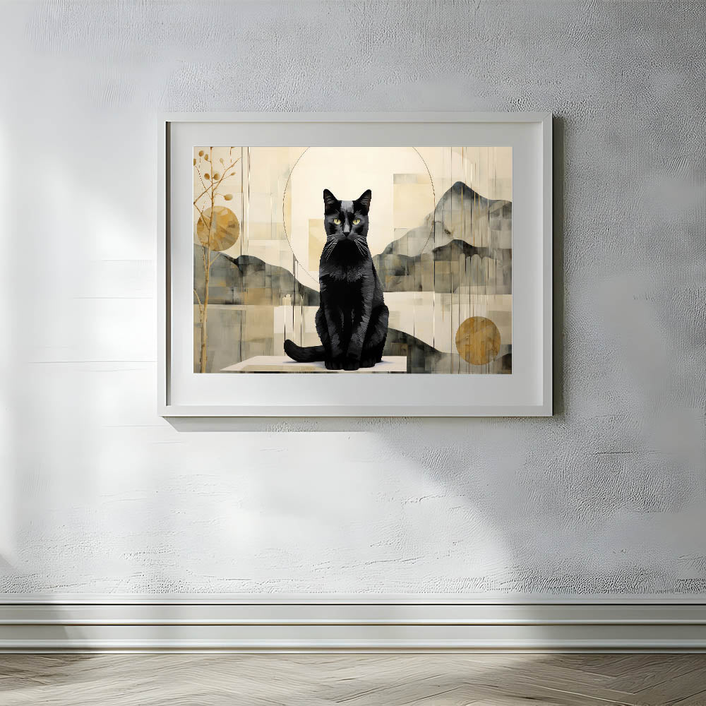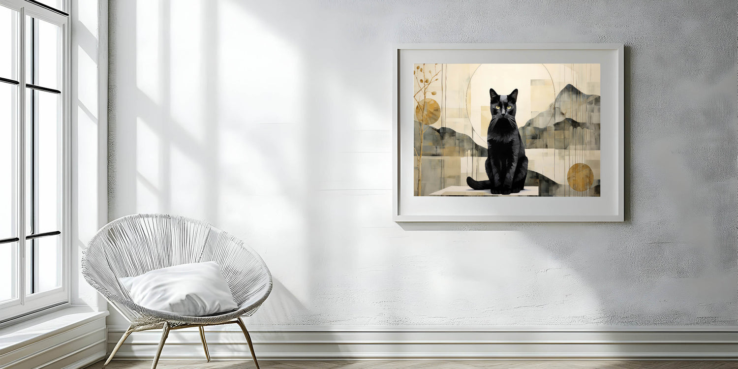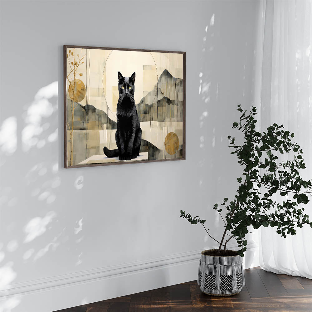 This black cat artwork is ideal for cat lovers who seek a blend of modern style and classic charm in their decor. It’s a piece that exudes both mystery and grace, making it a timeless addition to any room.