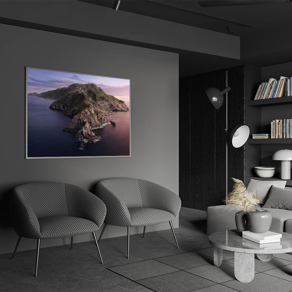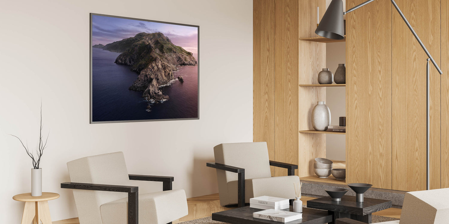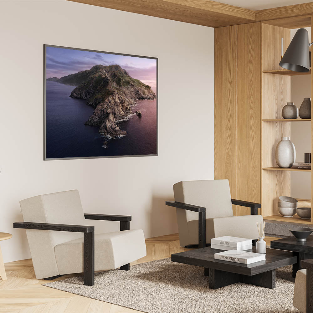 Immerse yourself in the rugged beauty of Catalina Island’s coastline with this dramatic mountain wall art. This stunning piece captures the rocky cliffs and serene ocean, with muted hues of pink and purple reflecting off the water as the sun sets behind the mountains. The natural elegance of this Catalina Island landscape art will bring a peaceful yet powerful presence to any room.
