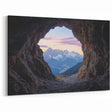 Experience the serene beauty of nature with this breathtaking cave photography print featuring a stunning mountain view. Framed by the rugged textures of a natural cave, the scene opens up to majestic snow-capped peaks under a pastel sky. This artwork combines the raw charm of cave interiors with the peaceful elegance of a mountain landscape, making it a perfect addition to any home or office decor.