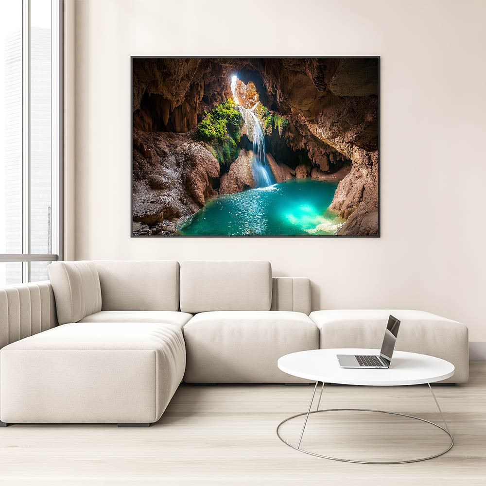 Hidden Waterfall Pool - Scenic Cave Wall Art for Tranquil Interiors