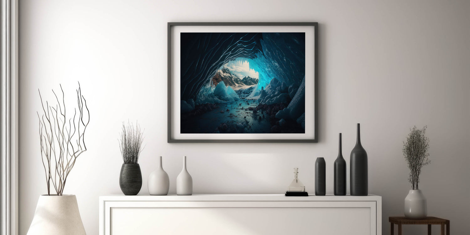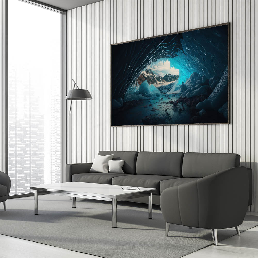 Transform your living space with this captivating ice cave photography. Whether you place it in your living room, bedroom, or office, this piece will inspire a sense of wonder and awe, bringing the serene beauty of nature into your home.