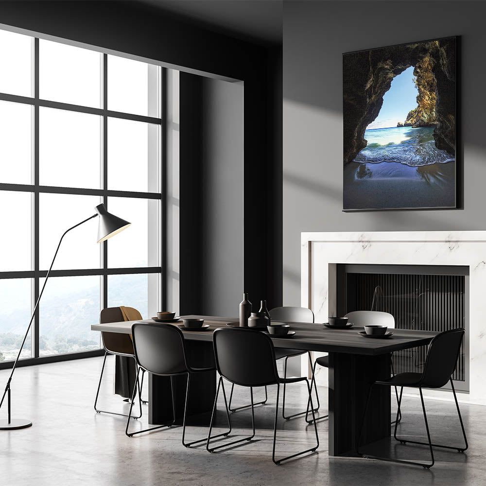 Whether you're a nature enthusiast or simply want to bring the outdoors into your living space, this piece offers a timeless, elegant touch. Enhance your decor with scenic cave wall art that captures the ocean's tranquility and the cave's rugged charm.