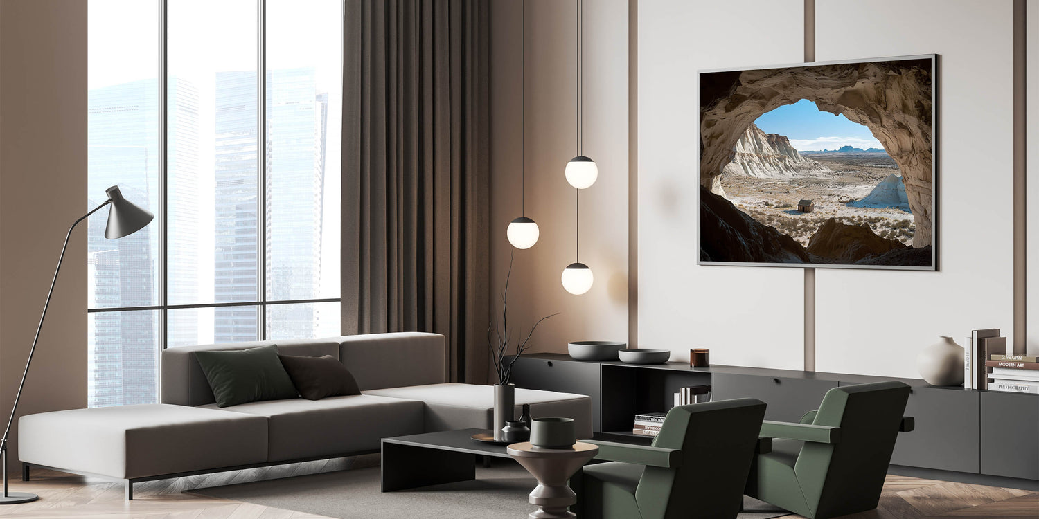 - High-quality prints of natural cave landscapes, available in multiple formats, including stretched canvas, framed canvas, and acrylic glass.