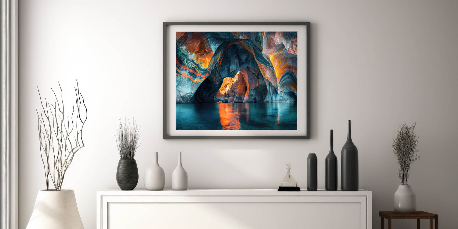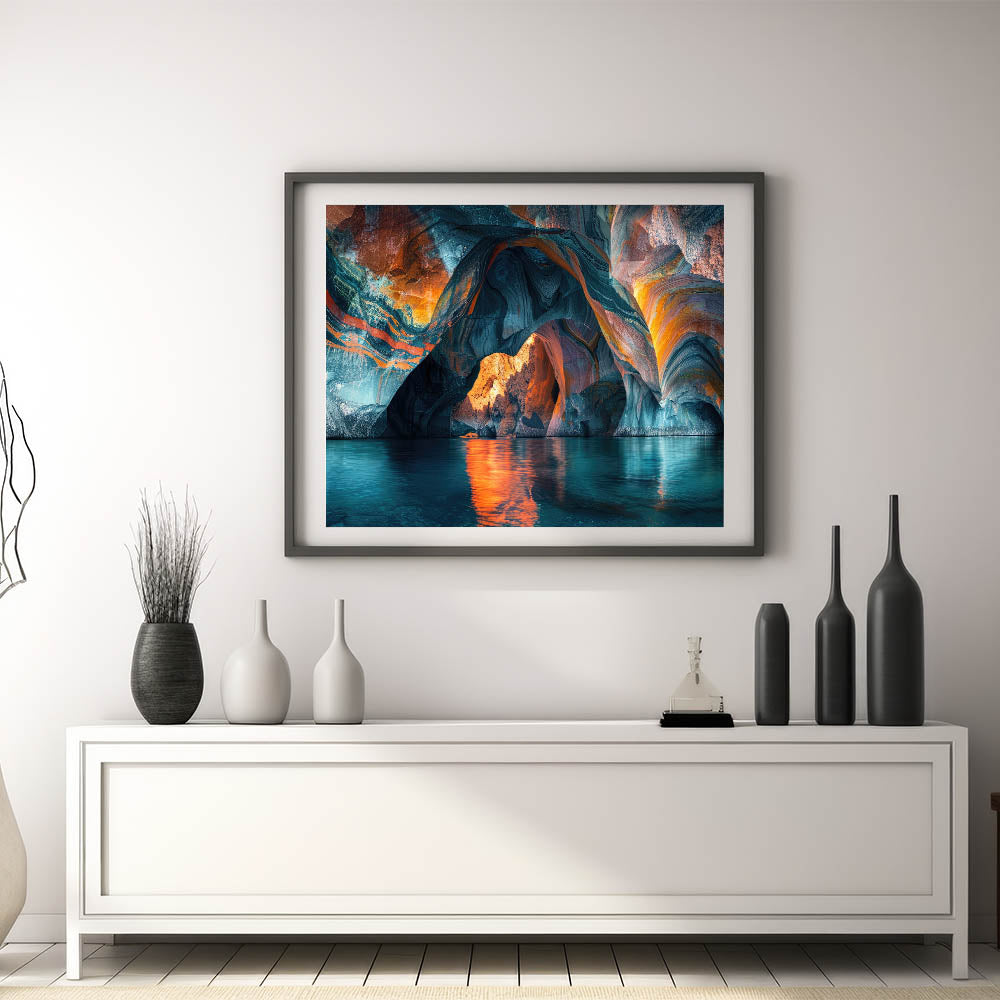Transform your living space with this bold and colorful cave photography print. Whether displayed in a living room, bedroom, or office, this artwork will bring a sense of energy and creativity to your decor.