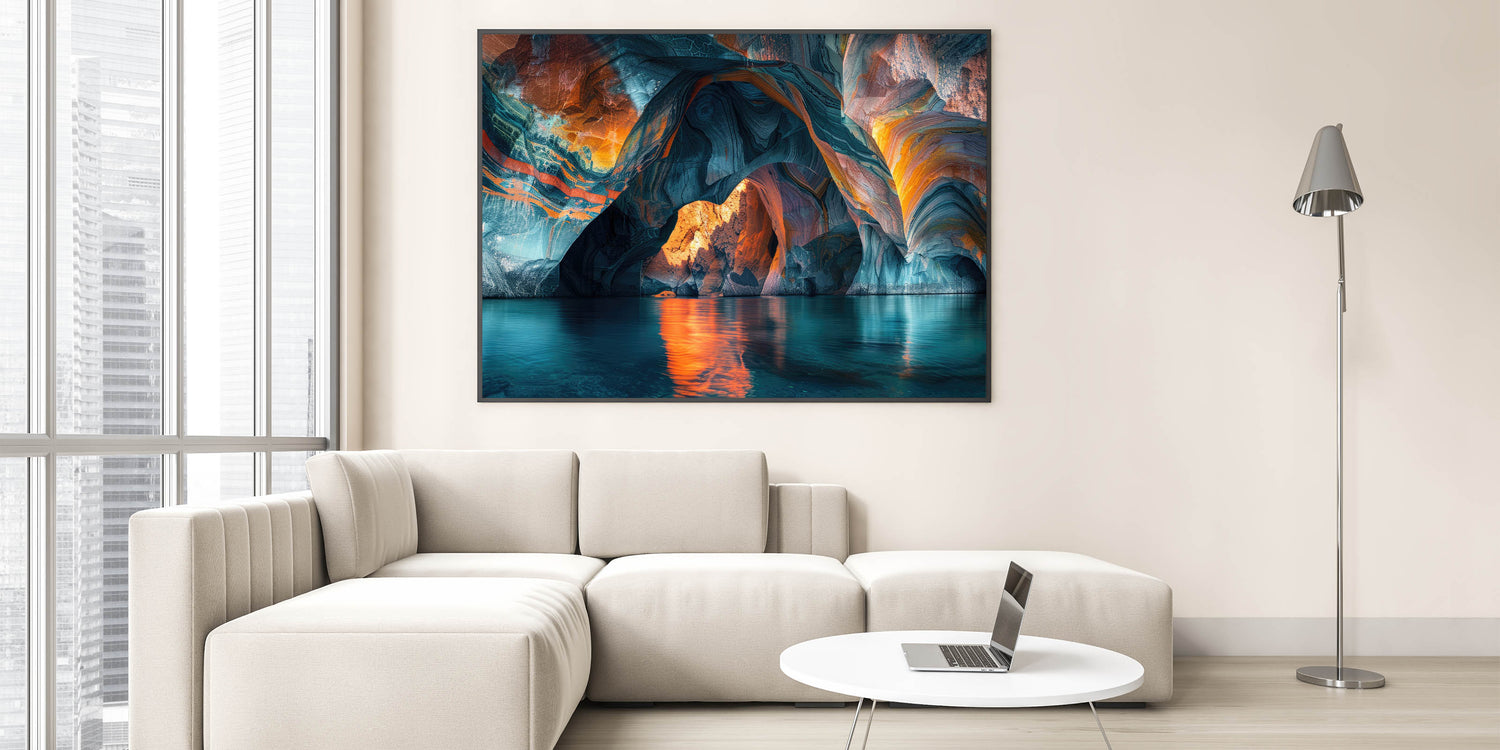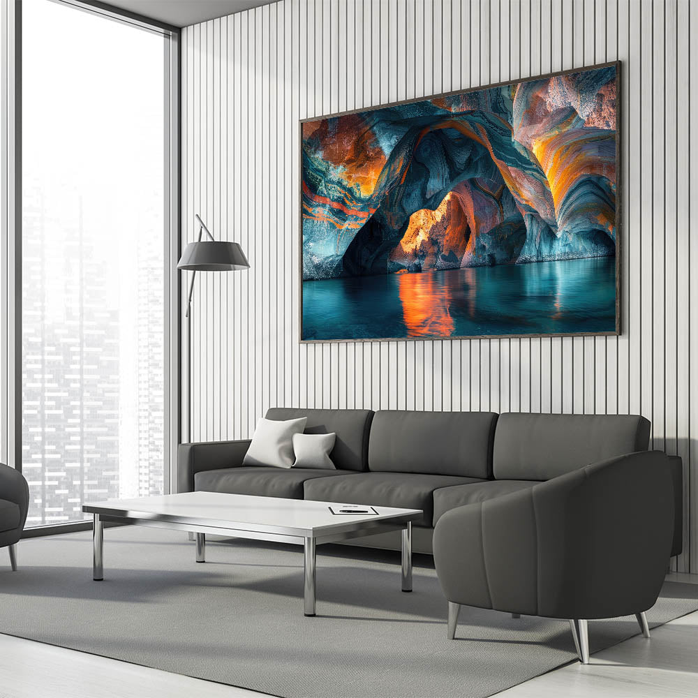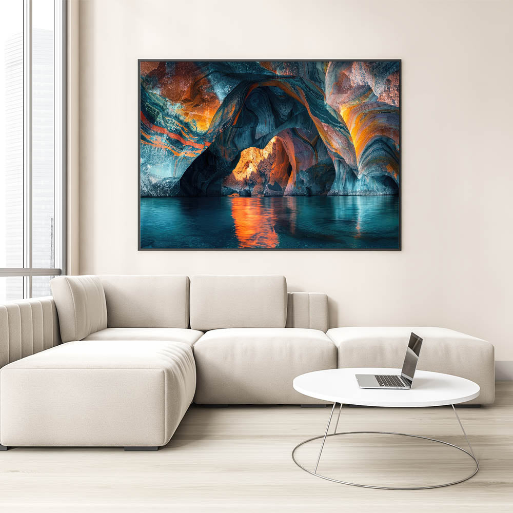 • High-resolution print showcasing the vibrant colors and abstract patterns of a natural cave.