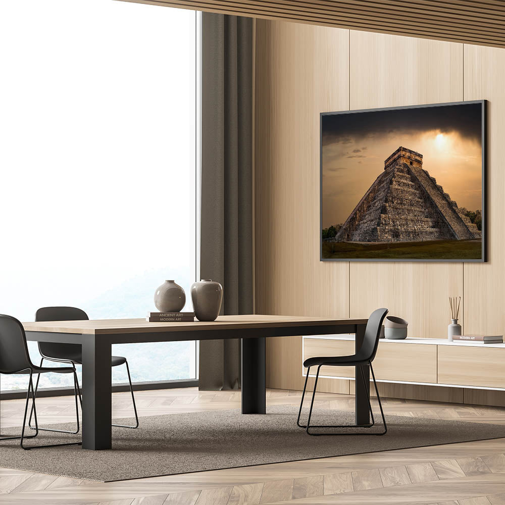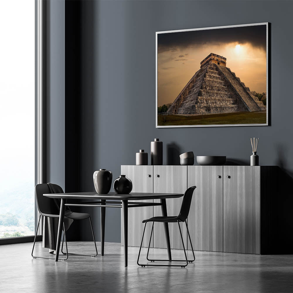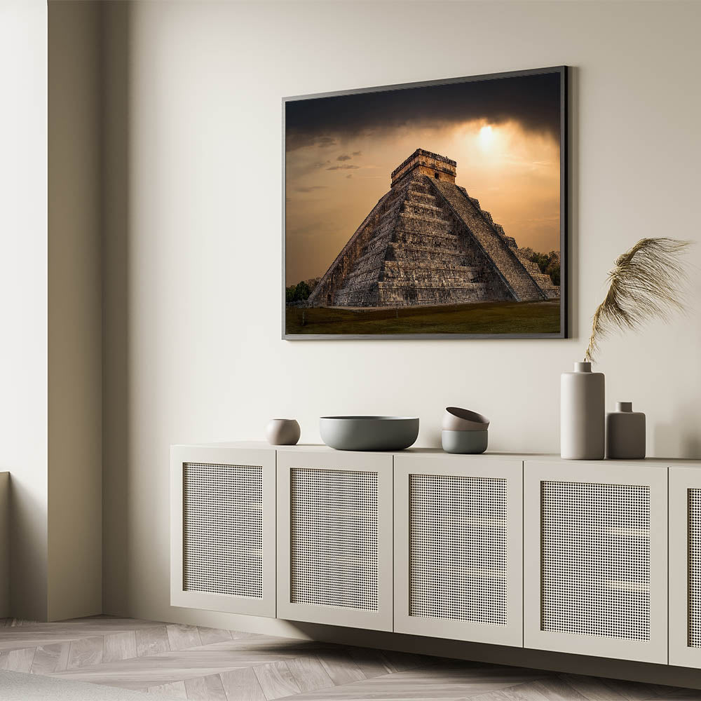 Ideal for admirers of historical landmarks and dramatic landscapes, this canvas adds a striking element to any room, serving as a focal point that invites reflection on the profound legacy of the Mayans.