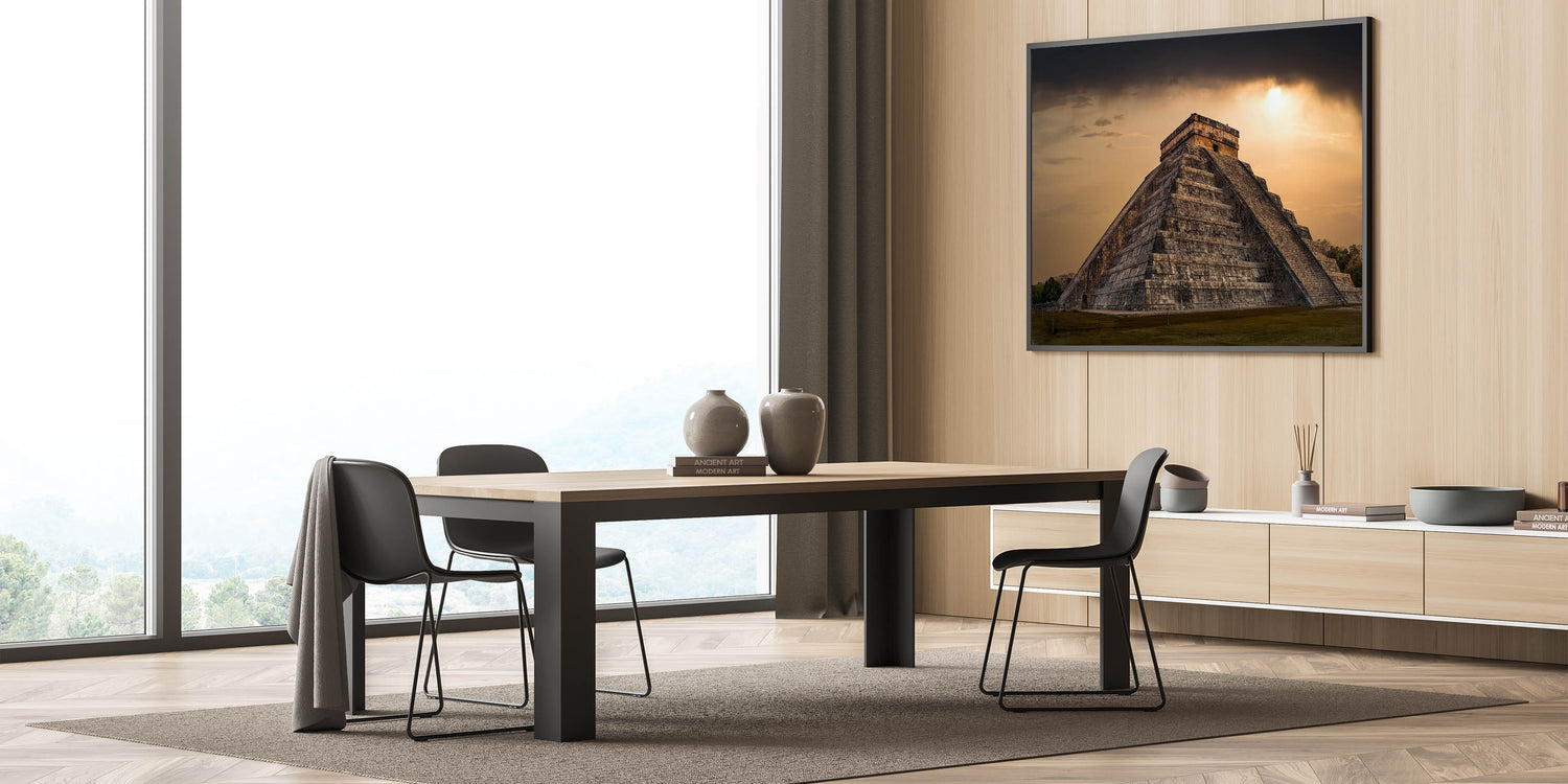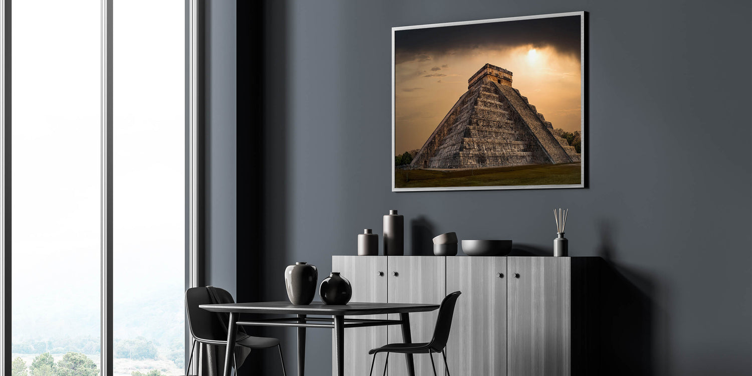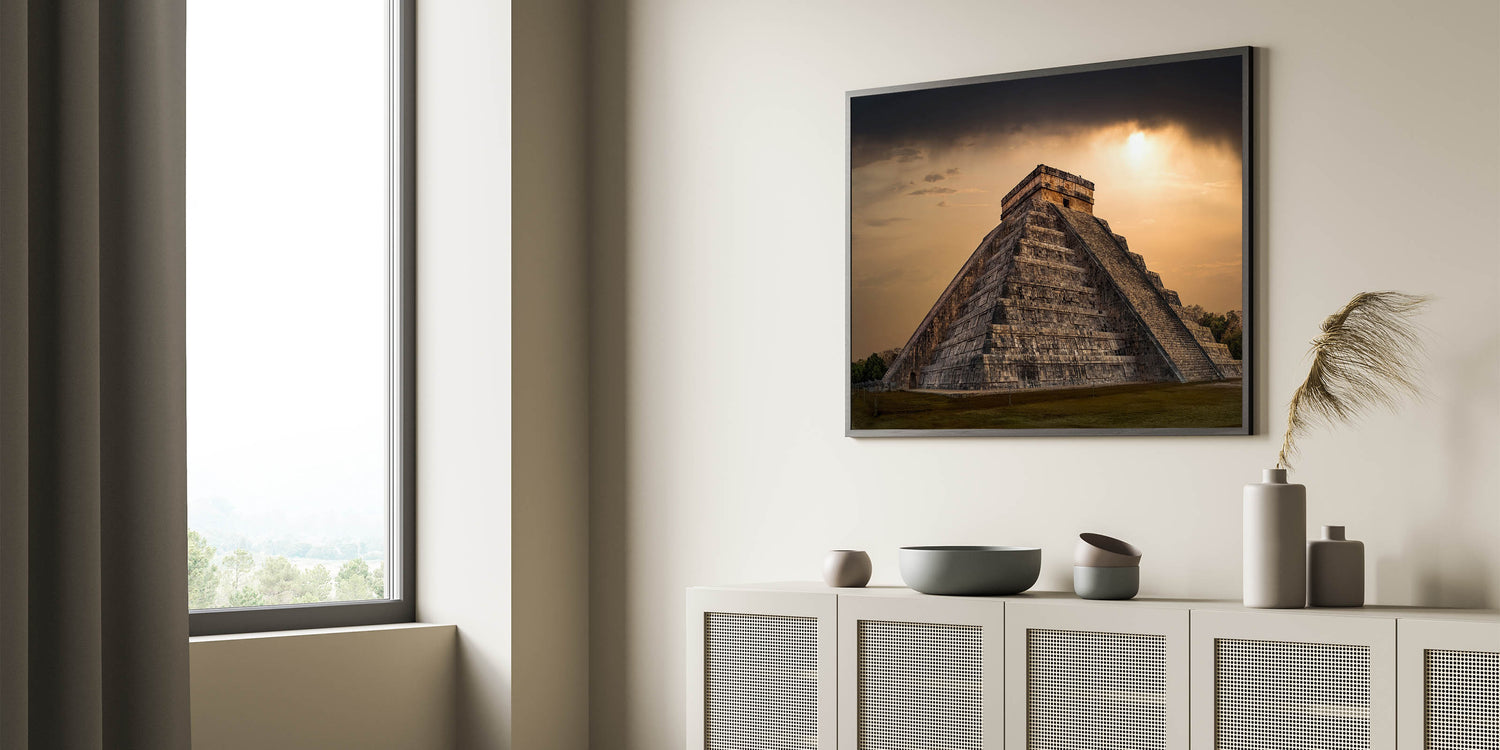 Ideal for admirers of historical landmarks and dramatic landscapes, this canvas adds a striking element to any room, serving as a focal point that invites reflection on the profound legacy of the Mayans.