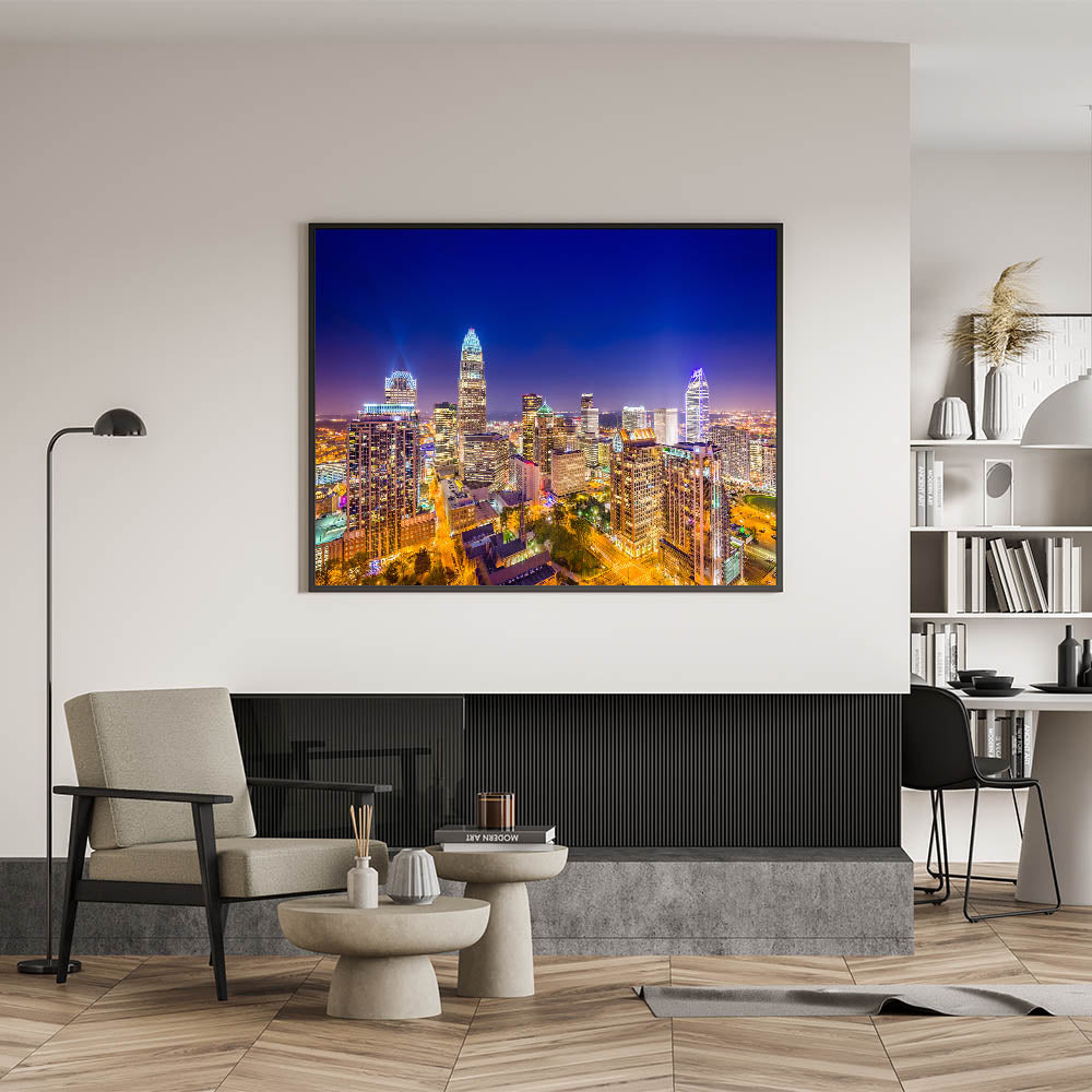 Charlotte Night Skyline – Vibrant Cityscape Photography Wall Art