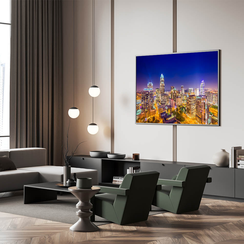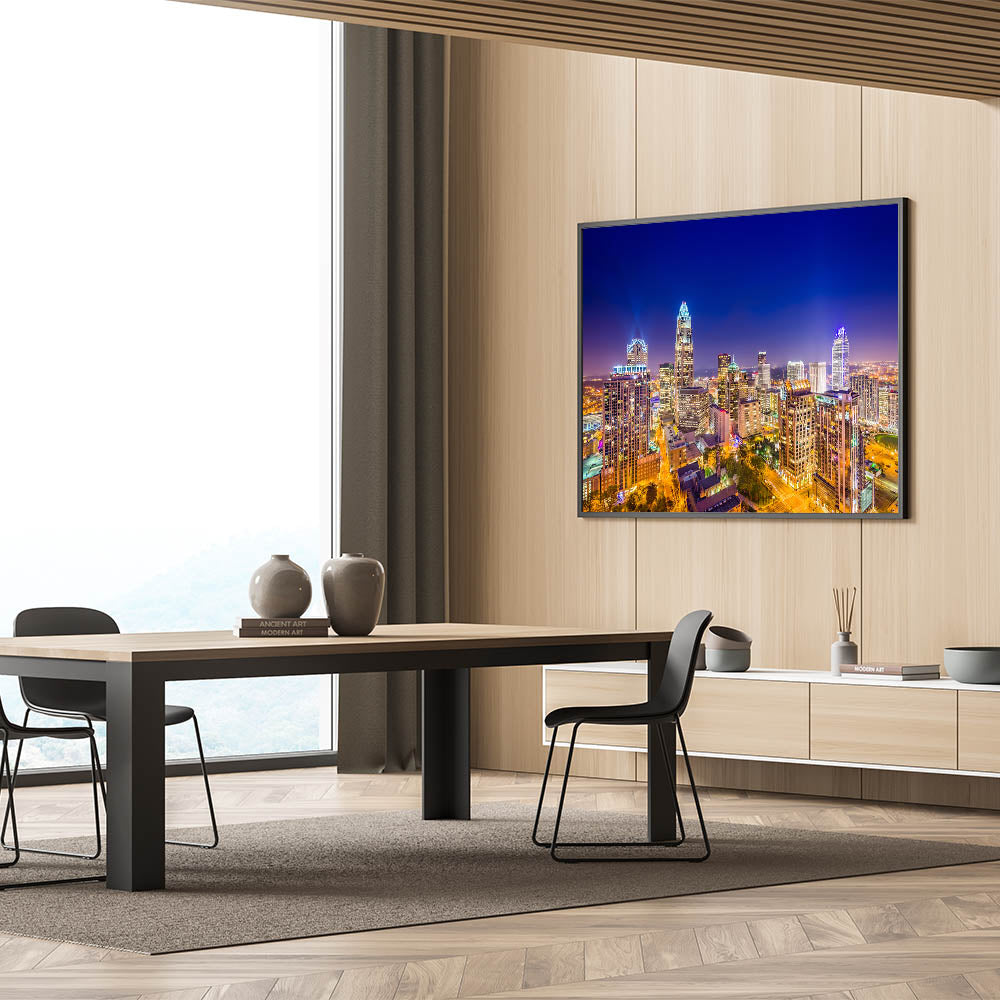 Whether you’re decorating a living room, office, or commercial space, this Charlotte night skyline print will infuse your environment with urban charm and a touch of North Carolina’s vibrant city life.