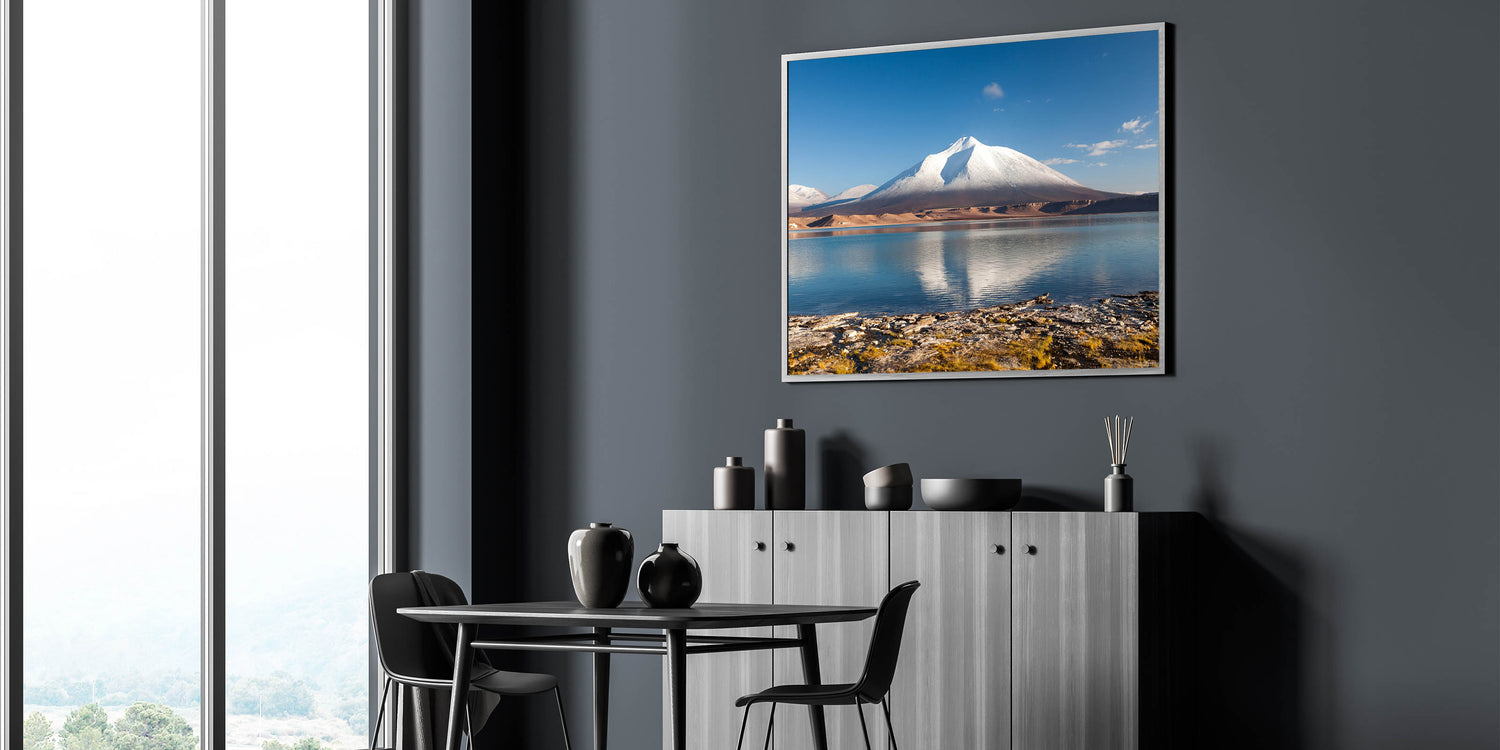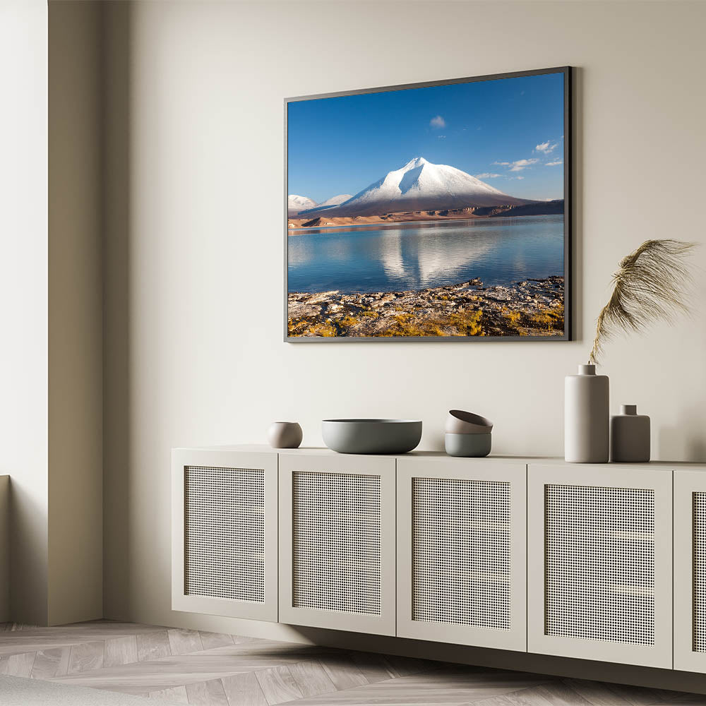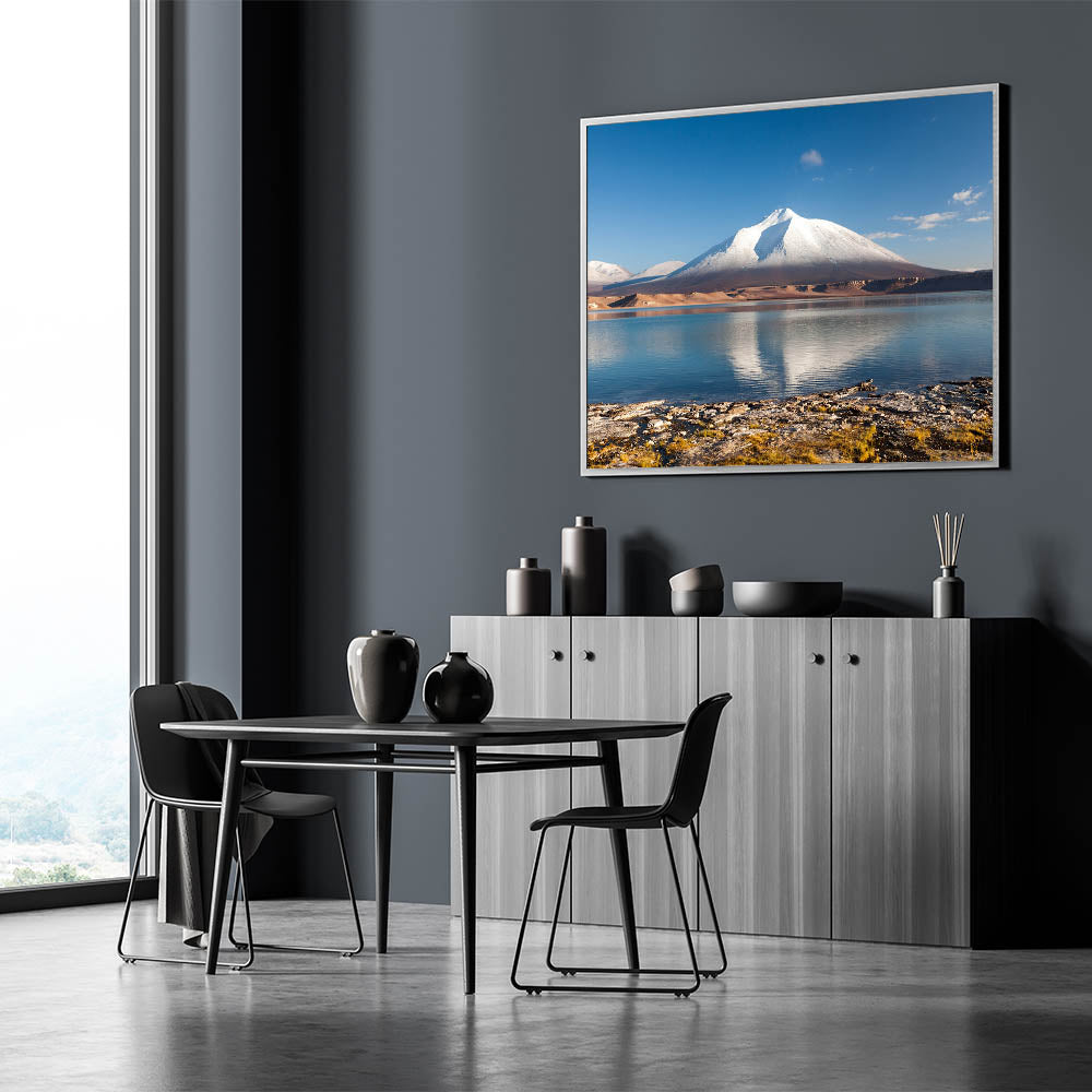 Capture the serene beauty of Chile’s Andean landscape with this stunning Chile wall art. Featuring a snow-capped mountain reflected on tranquil waters, this breathtaking scene embodies the peaceful yet dramatic nature of the Chilean Andes. Perfect for those seeking South American wall decor, this artwork brings a sense of calm and wonder to any space.
