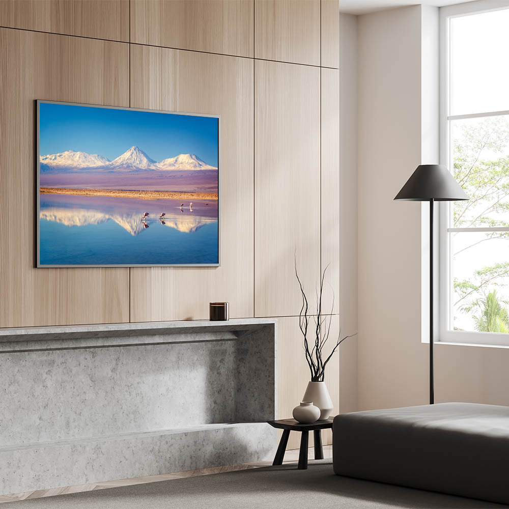 Patagonia Wall Art – Majestic Flamingos & Snowcapped Chilean Mountains