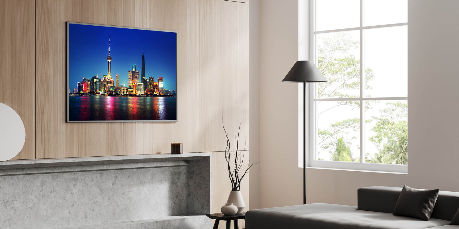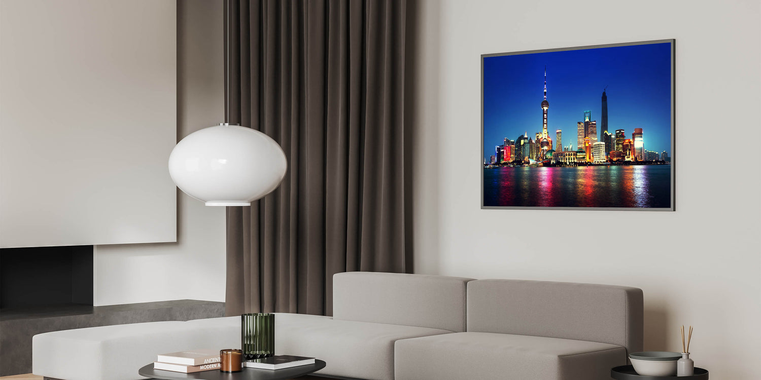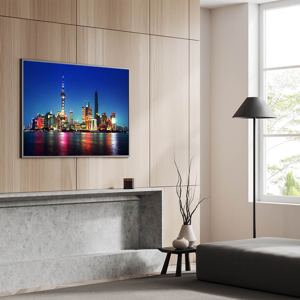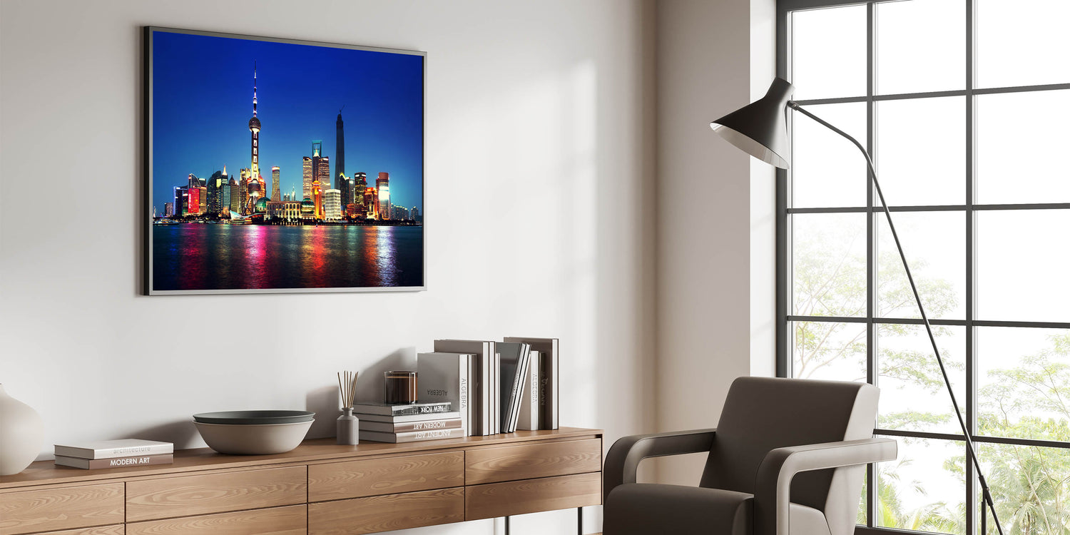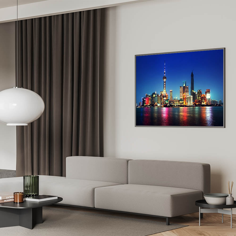 • Beautiful Chinese wall decor showcasing Shanghai’s skyline at night