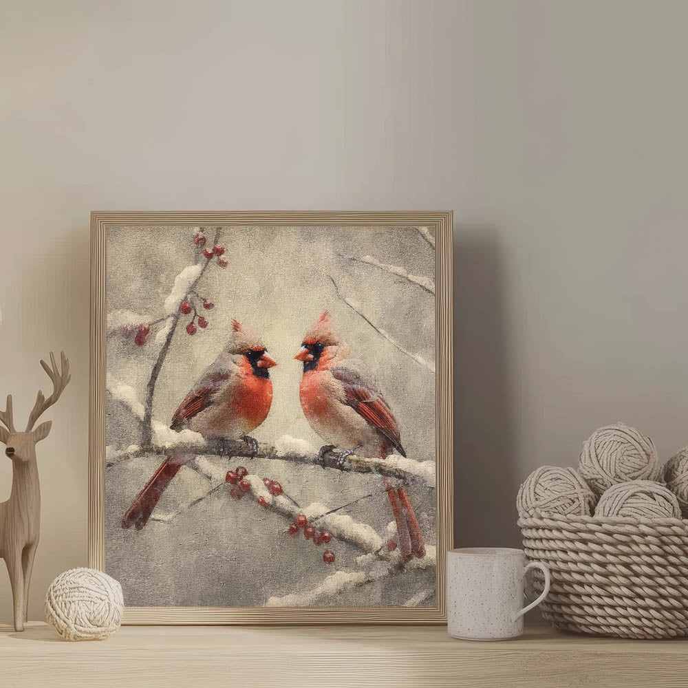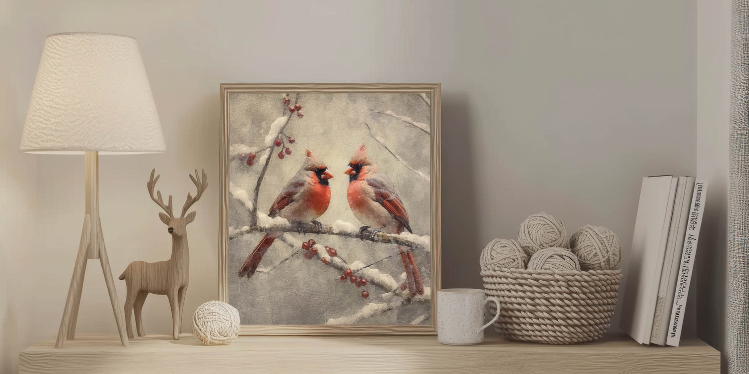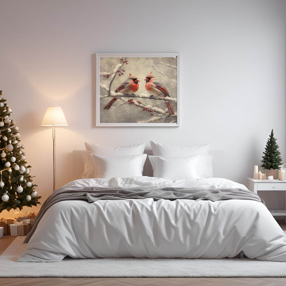 Capture the beauty of winter with this cardinal artwork, offering a timeless design that complements any Christmas or holiday decor. It’s the perfect addition to your seasonal collection.