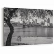 Transform your space with this striking black and white Cincinnati skyline wall art. Captured in stunning detail, this photograph showcases the iconic downtown Cincinnati architecture with the serene Ohio River in the foreground. The monochrome tones bring out the intricate details of the cityscape, making it a timeless piece perfect for modern and minimalist interiors.