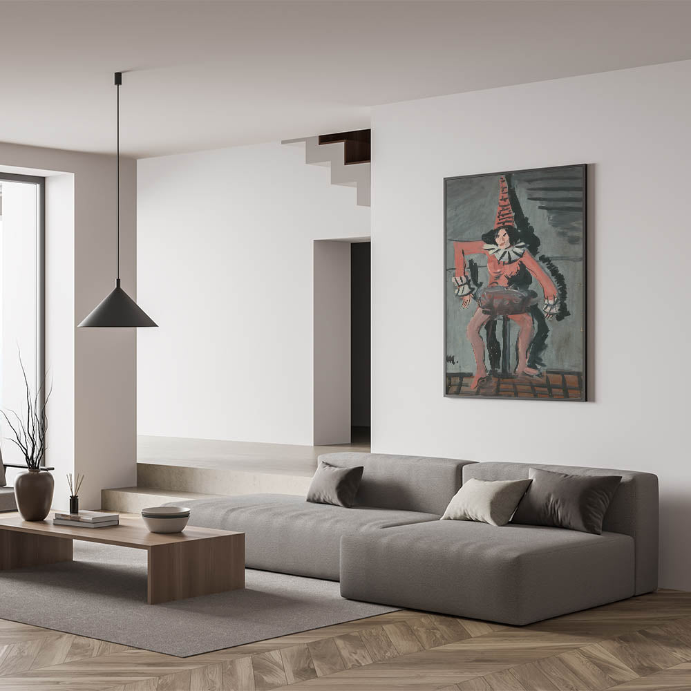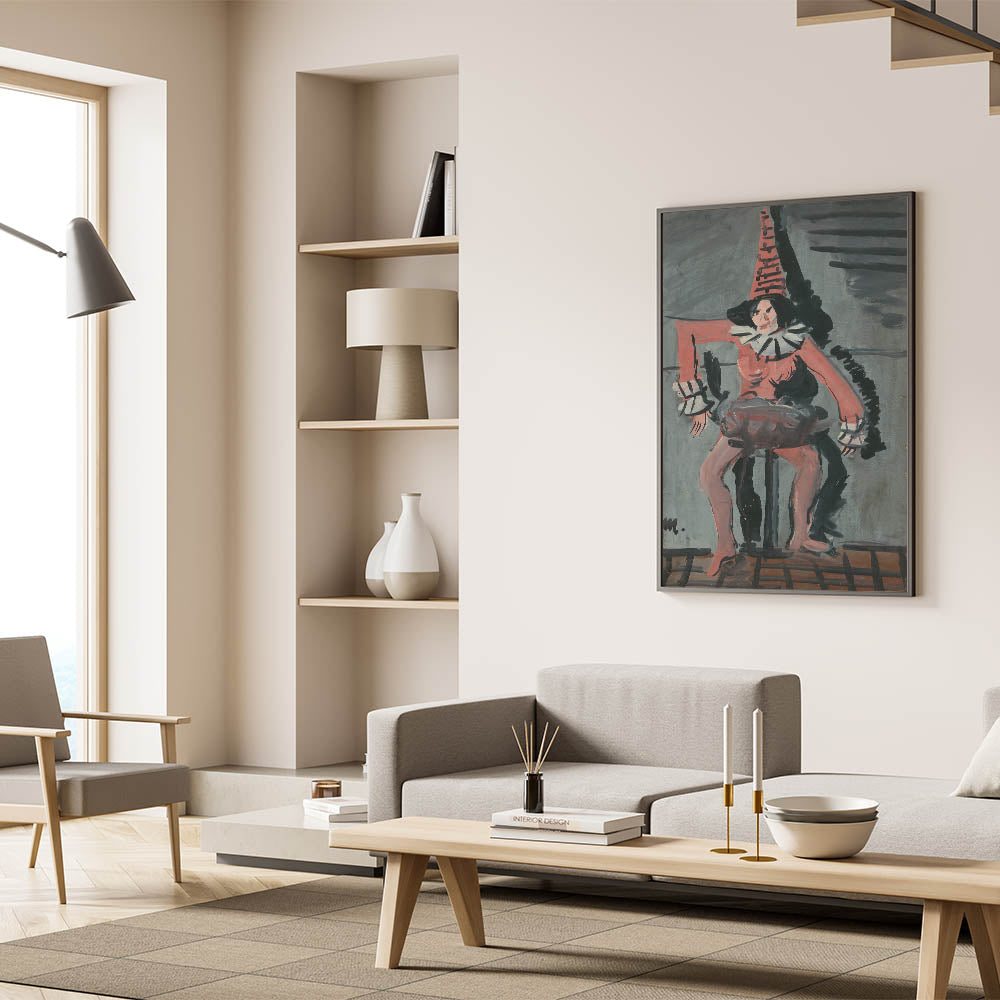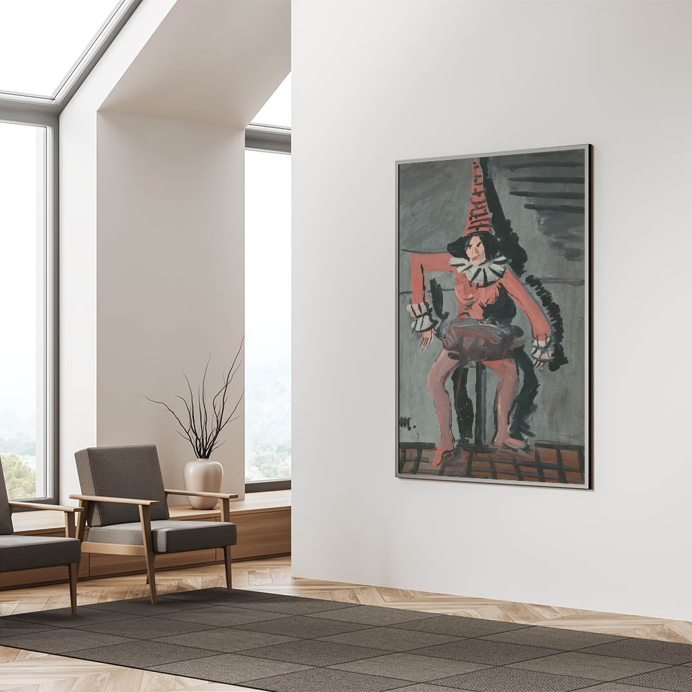 Introduce a theatrical touch to your home with this Vibrant Expressionism Painting. Inspired by Abstract Expressionism, this artwork captures the essence of the iconic Pierrot figure in a strikingly emotional and dramatic pose. The combination of muted tones with bold highlights makes it an excellent choice for those seeking Expressionist Art for Sale.