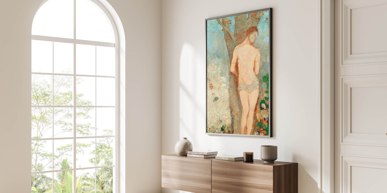 Introduce a touch of elegance and history to your decor with our unique "Saint Sebastian" wall art, inspired by Odilon Redon's masterpiece. This modern art piece blends ethereal colors and abstract elements, capturing the contemplative beauty of Saint Sebastian. It’s perfect for enhancing any modern interior, adding a soft yet striking focal point to your space.