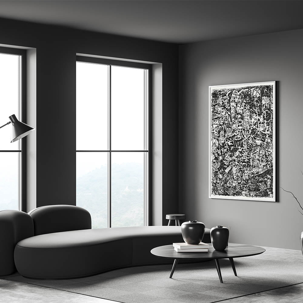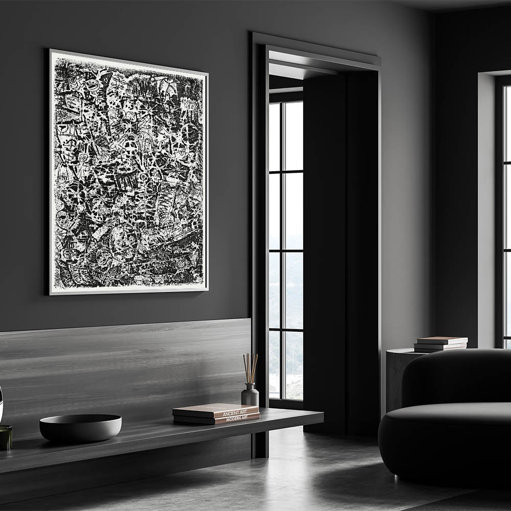 This print is perfect for art lovers who appreciate abstract compositions and monochromatic decor. Whether you’re designing a minimalist space or adding an artistic touch to your home or office, this piece serves as a striking focal point that enhances any modern setting.