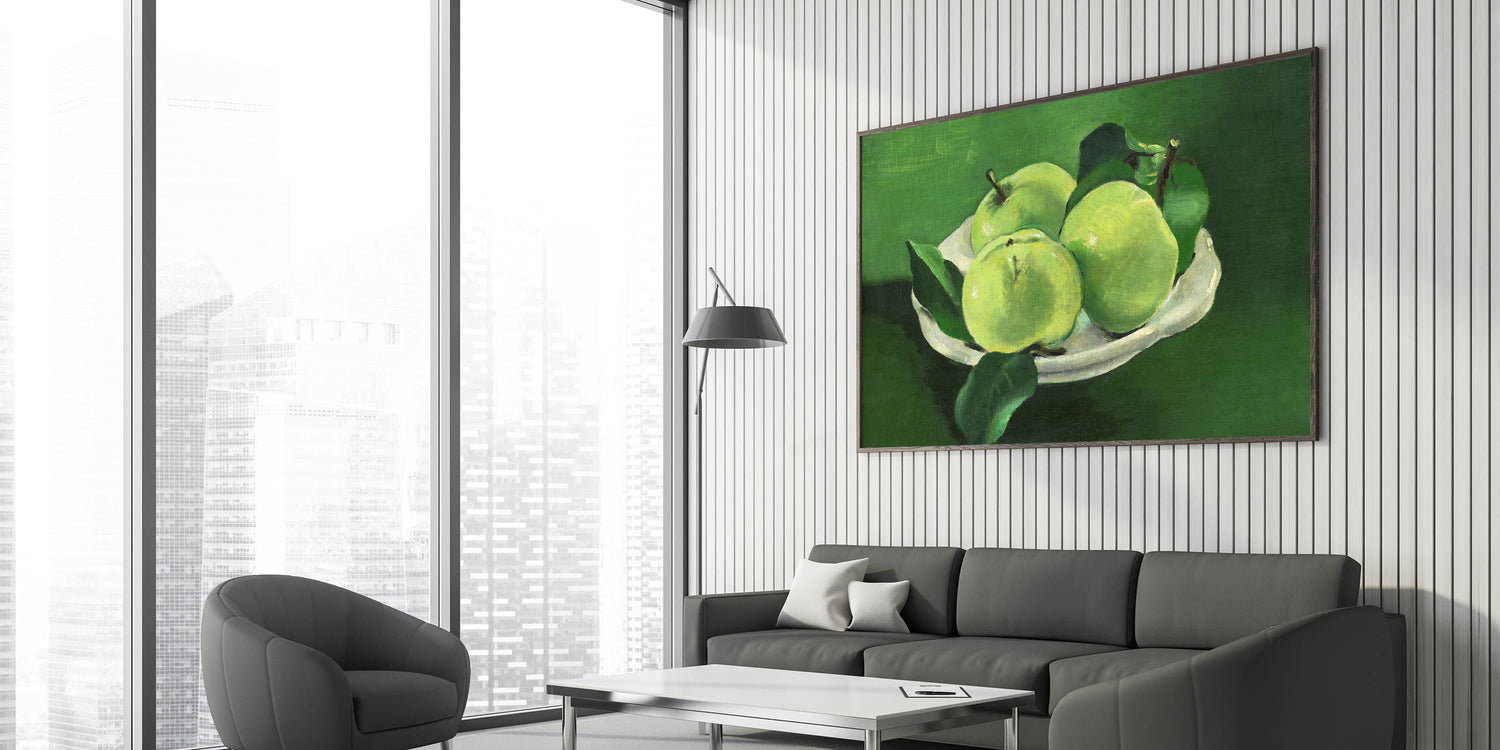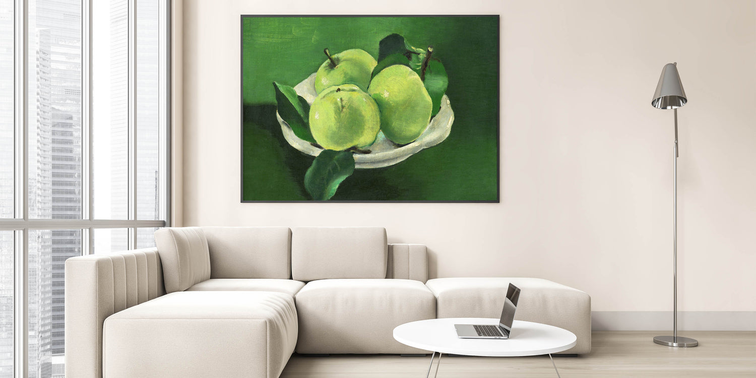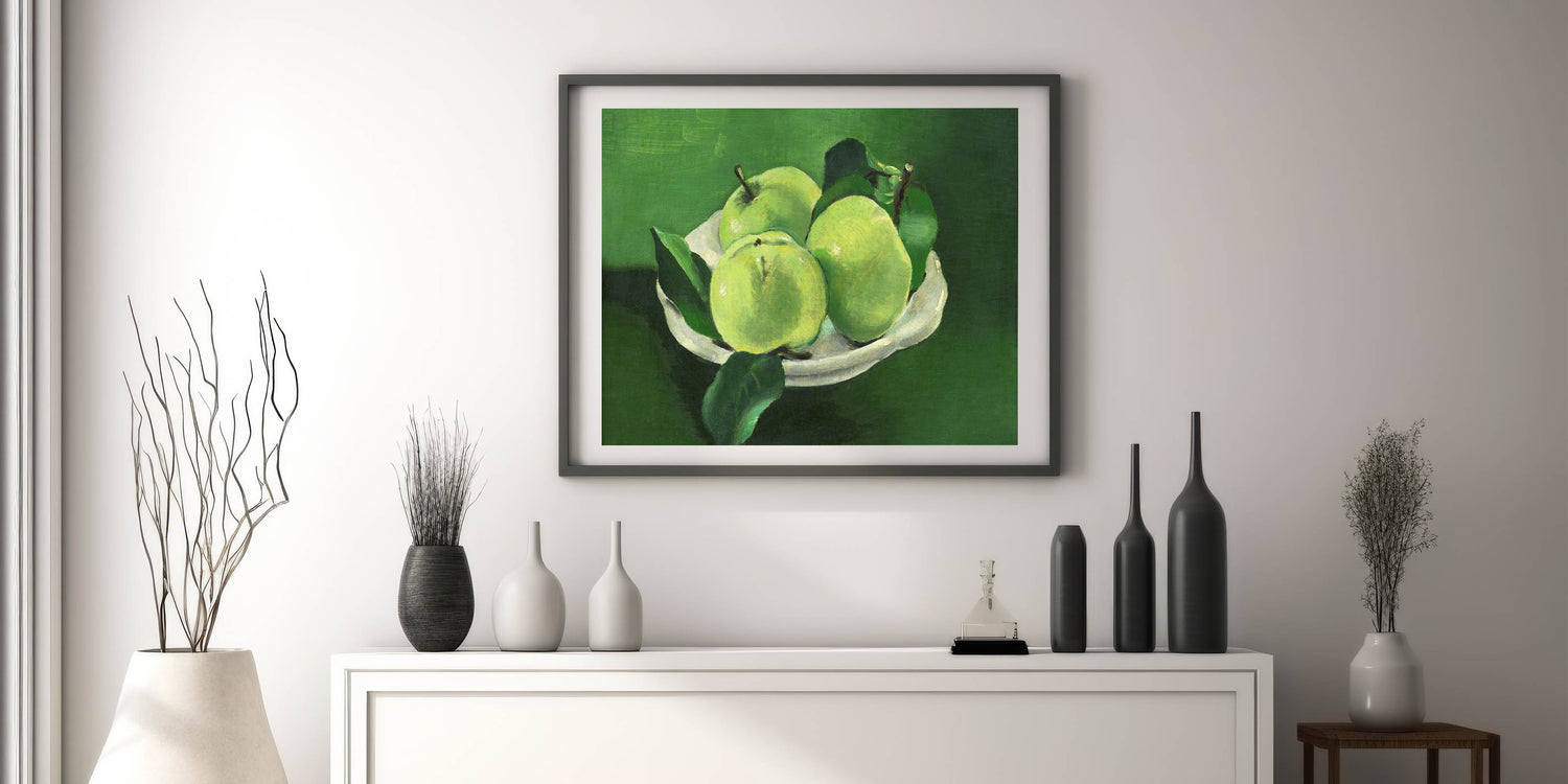 Modern Wall Art: Still Life with Green Apples in a Vibrant Composition