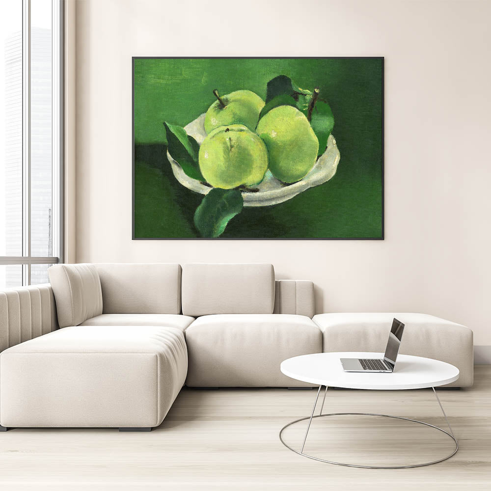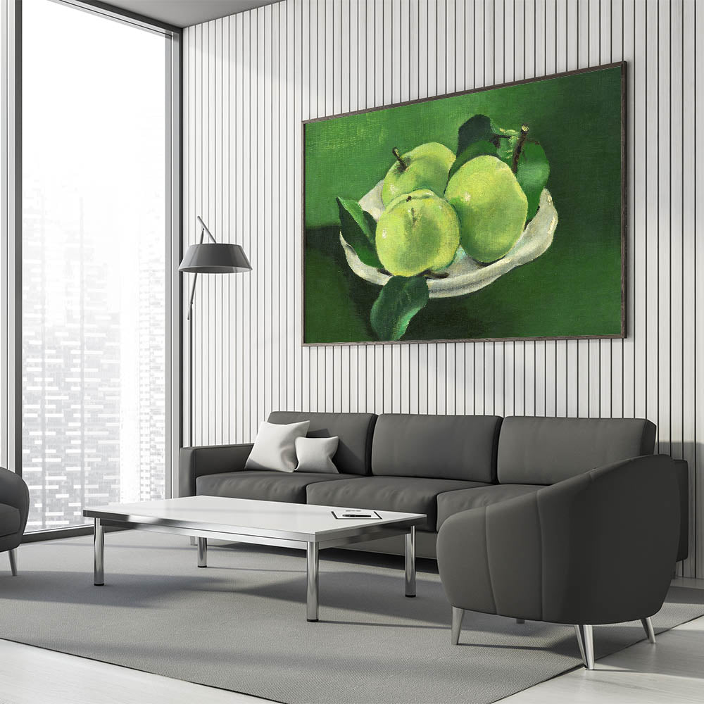 Bring a refreshing pop of color to your home with this Modern Wall Art, featuring a vibrant still life of green apples in a bowl. The rich green palette dominates the composition, creating a harmonious and visually striking effect. The smooth brushstrokes and attention to detail evoke a sense of simplicity and elegance, making it a perfect addition to Trendy Home Décor.