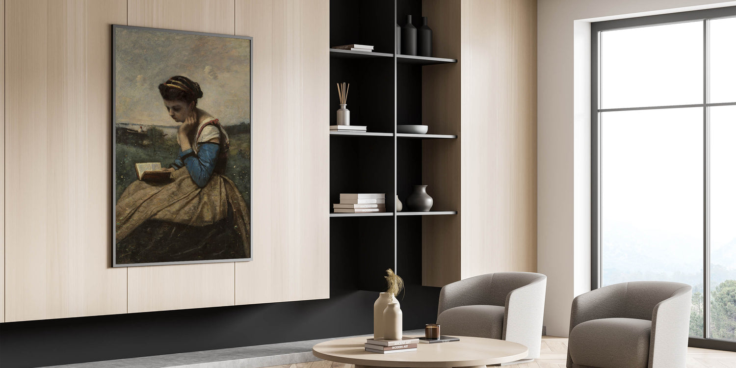 Add a touch of quiet elegance to your home with "A Woman Reading" Realism Art Print by Camille Corot. This captivating piece portrays a young woman engrossed in a book, seated outdoors in a tranquil, natural setting. Painted with the soft, refined brushwork characteristic of Corot’s style, the artwork exudes a sense of peace and contemplation. Perfect for lovers of classical realism and intimate portraits, this print brings depth and a contemplative atmosphere to any room.