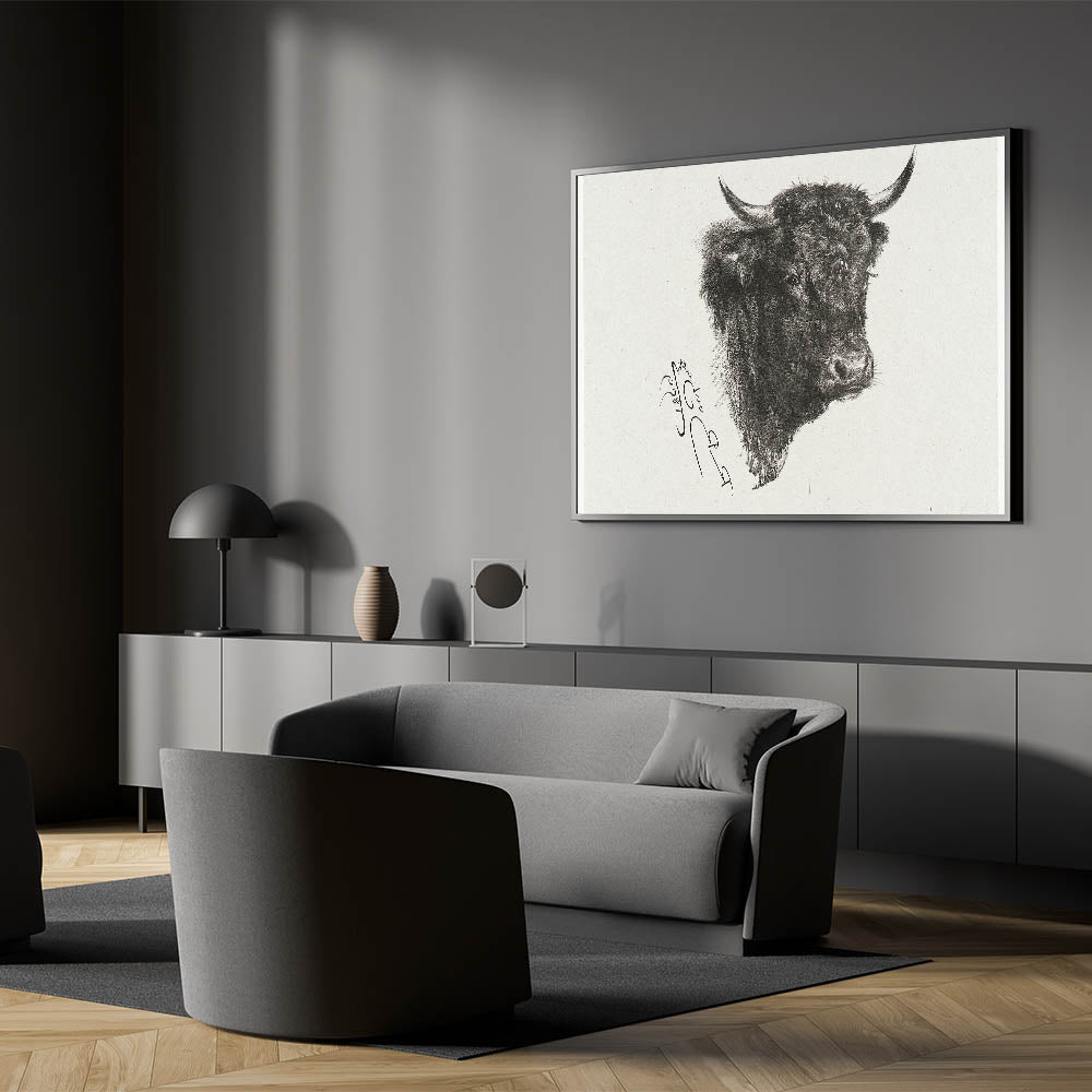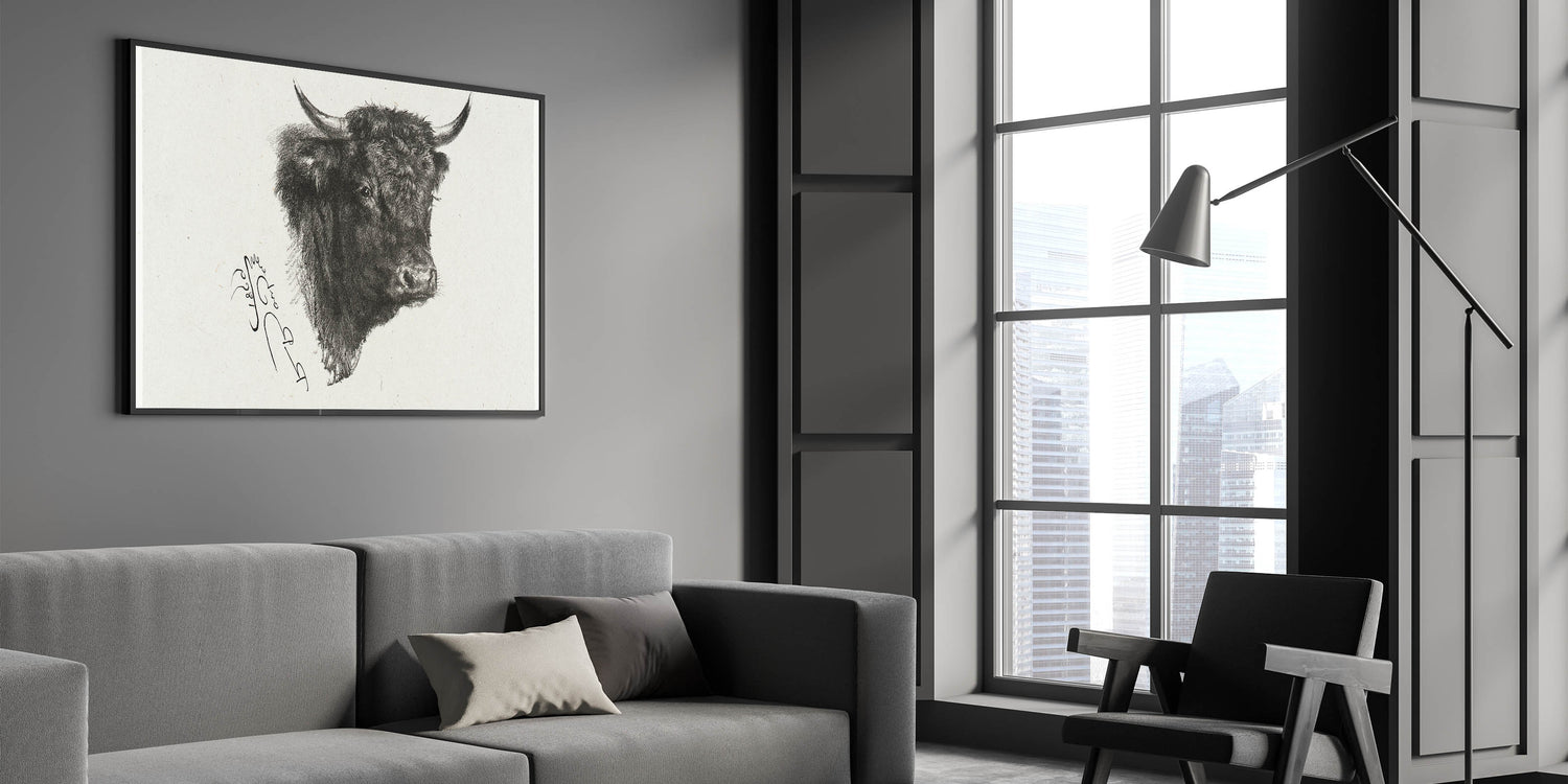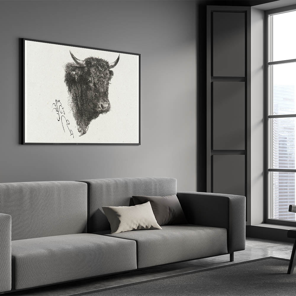 Animal Realism Art Print - Head of a Bull by Marie Rosalie Bonheur - Fine Detail Sketch