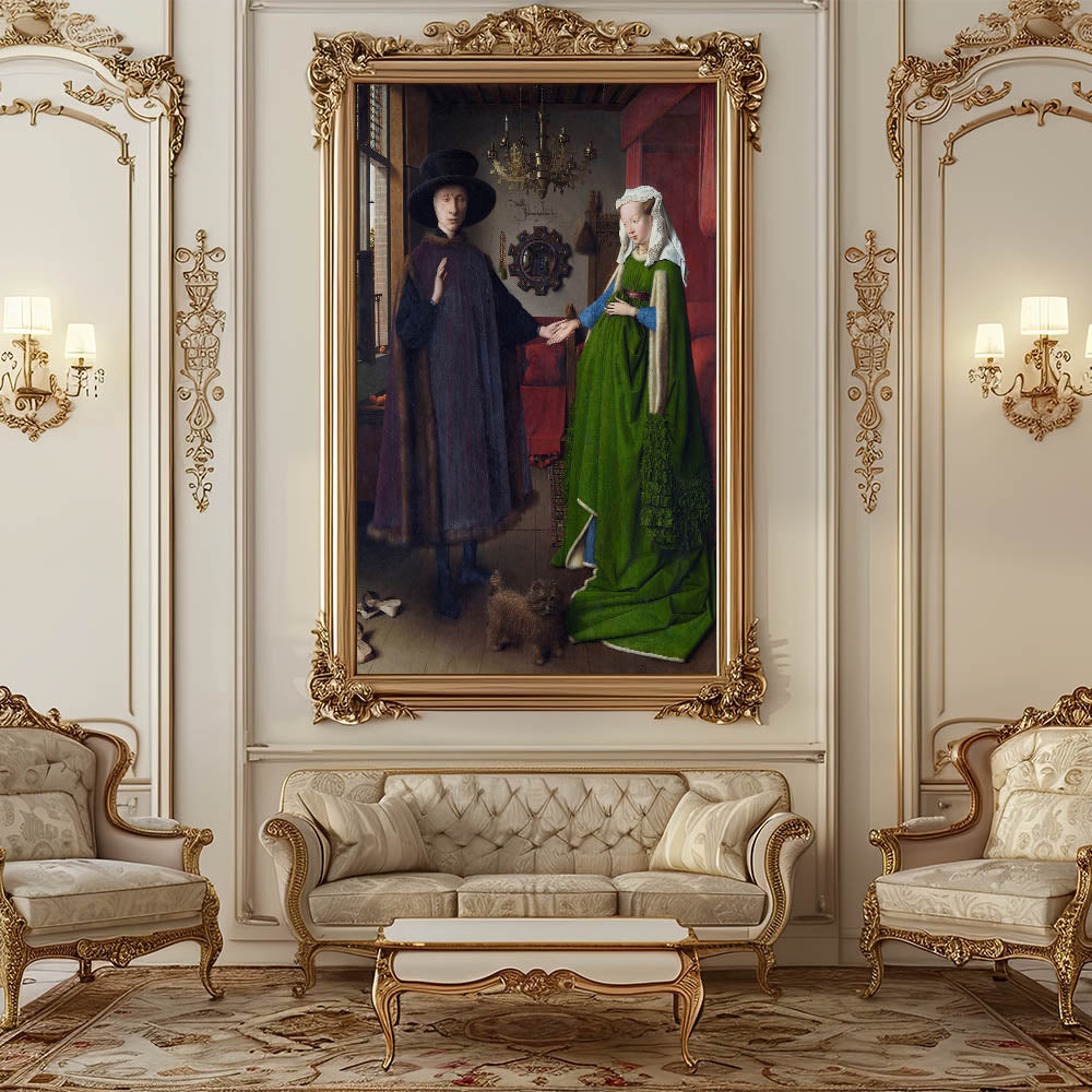 The Arnolfini Portrait combines artistic mastery and historical significance, making it an ideal addition to your art collection or living space. Let this masterpiece add depth, elegance, and a sense of history to your decor.