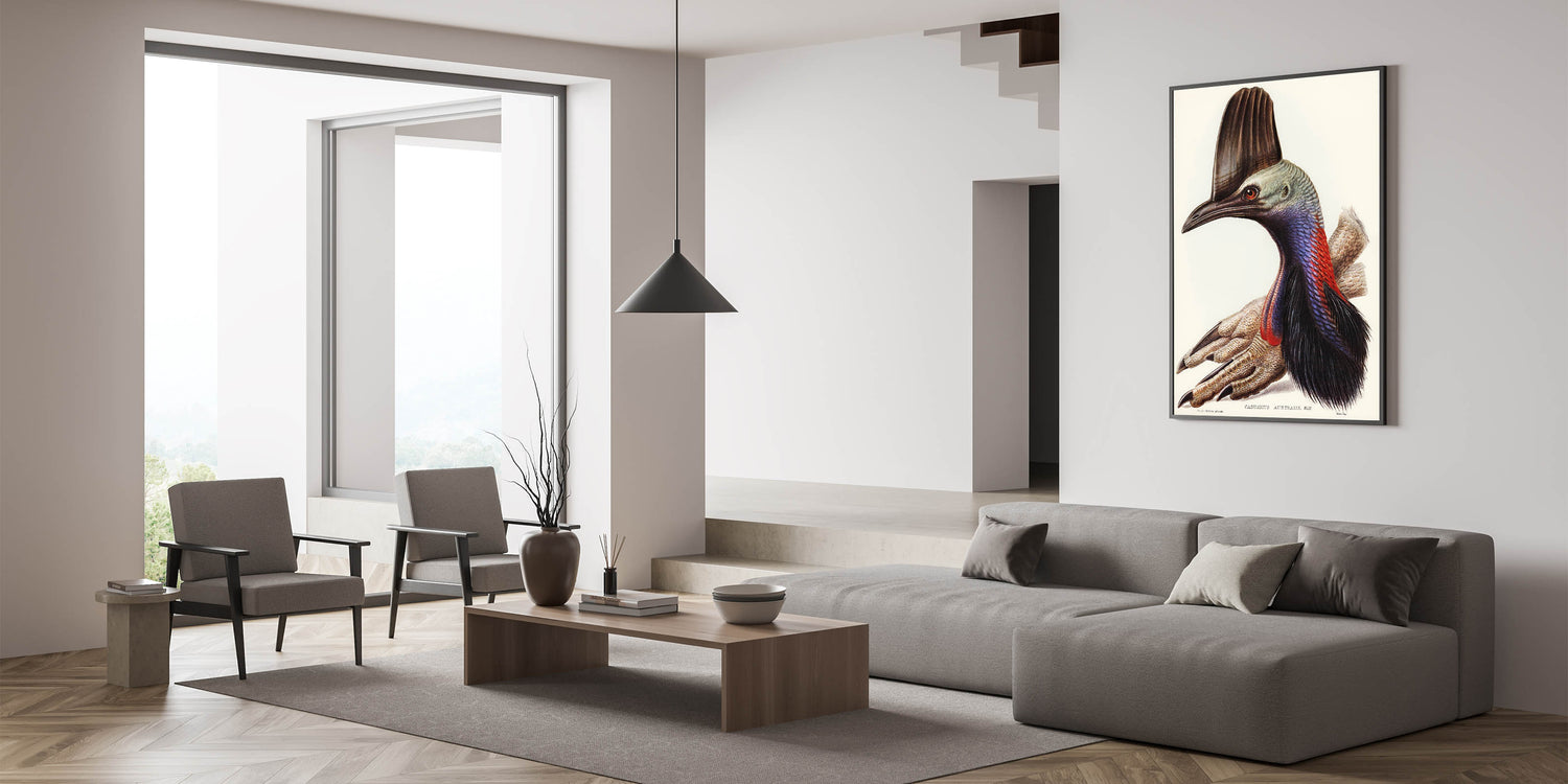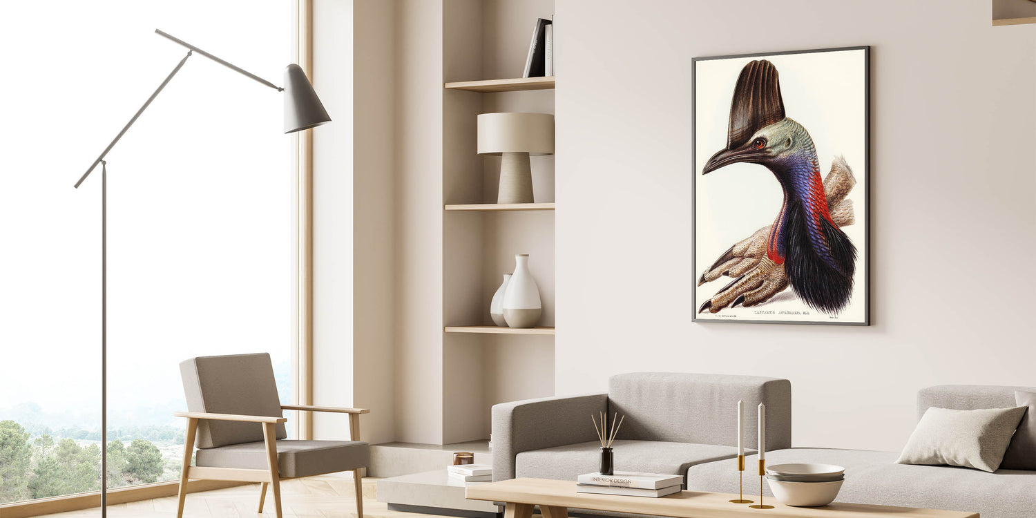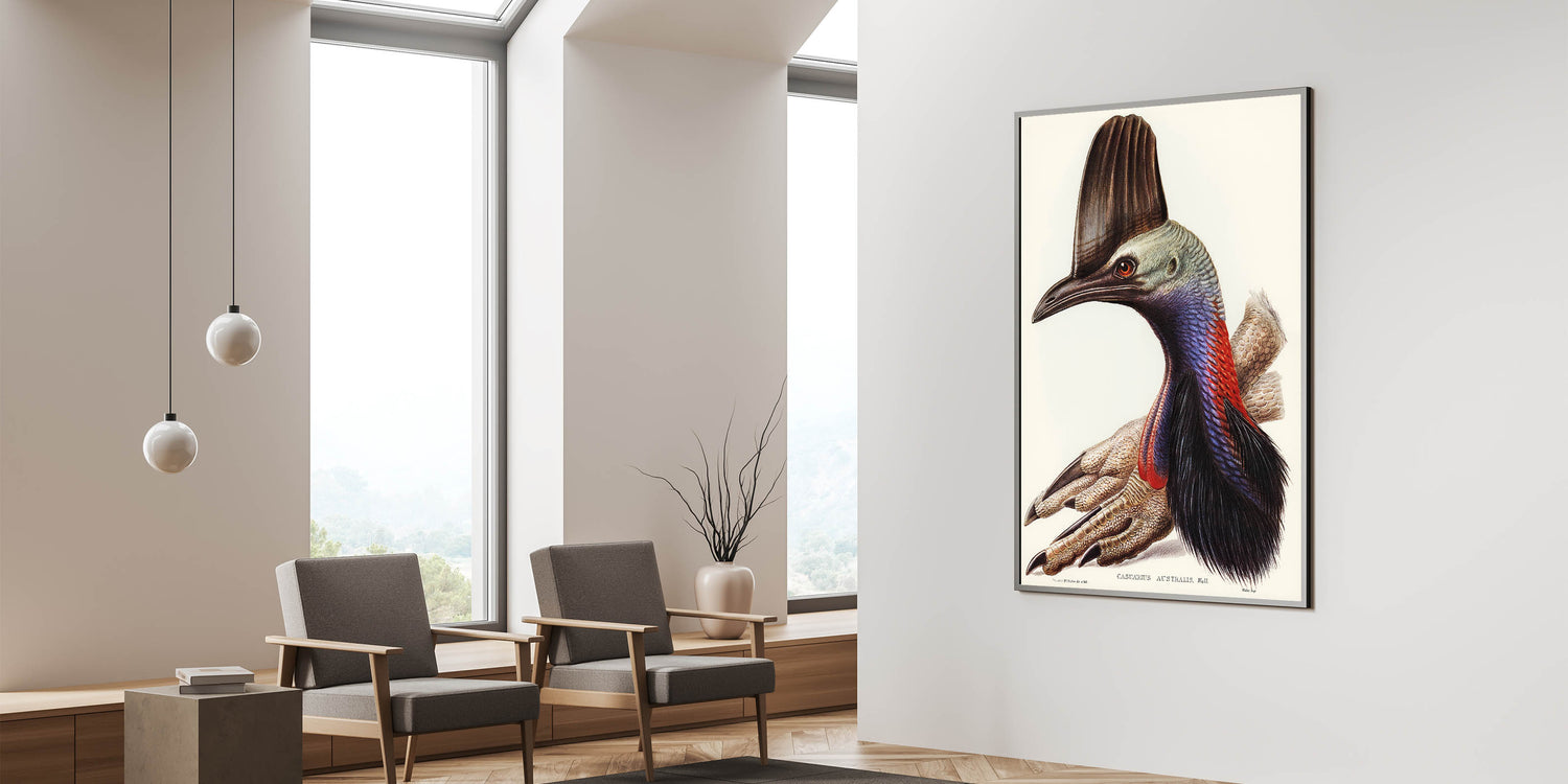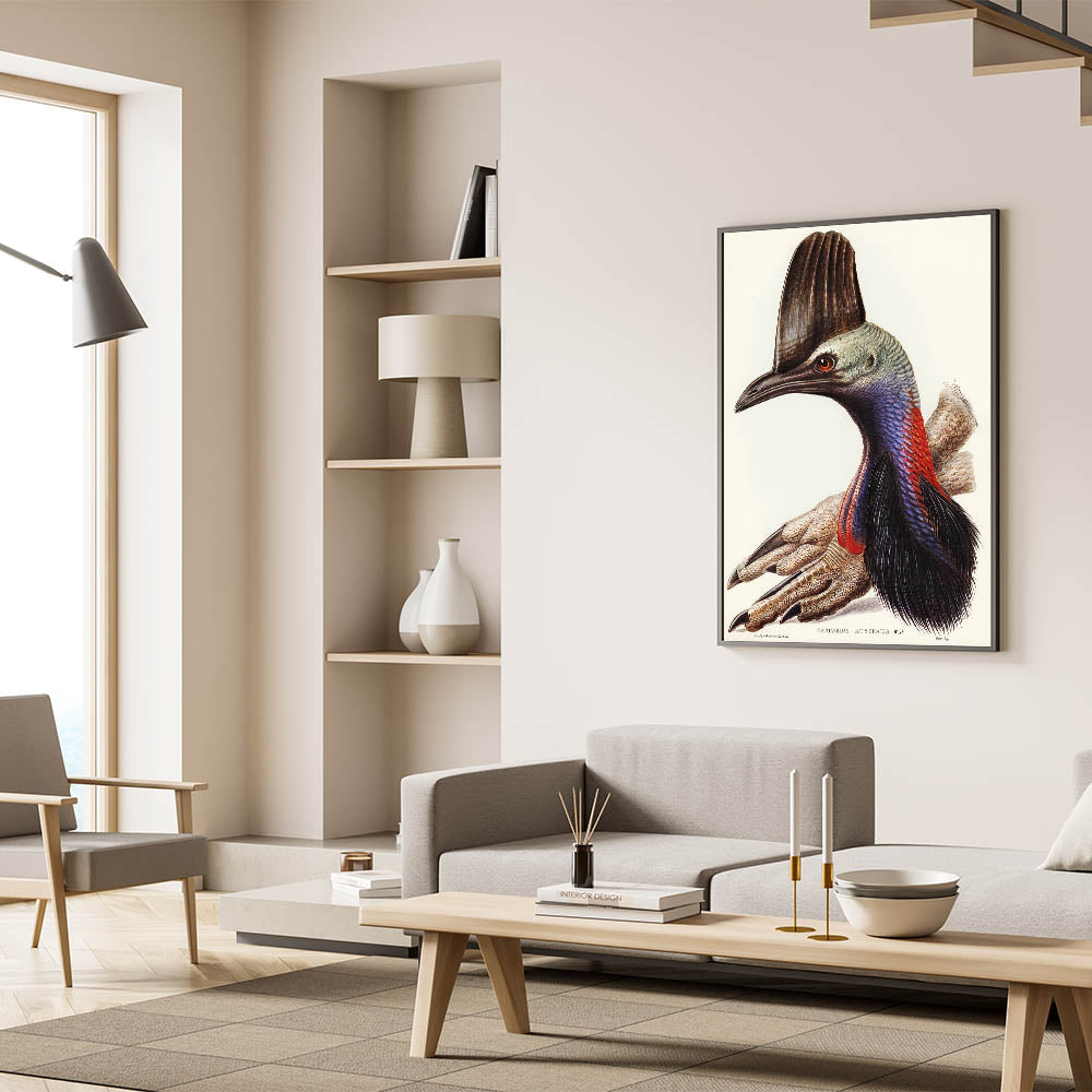 This timeless piece is ideal for art collectors and wildlife enthusiasts alike. Bring a piece of history into your space with this Romantic era illustration that showcases the fascinating beauty of the Australian Cassowary.