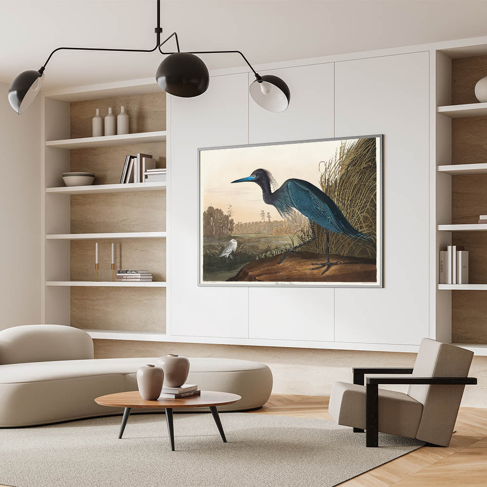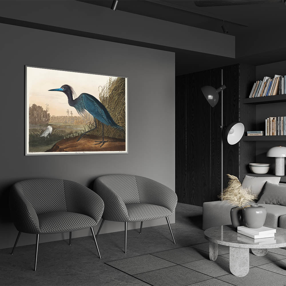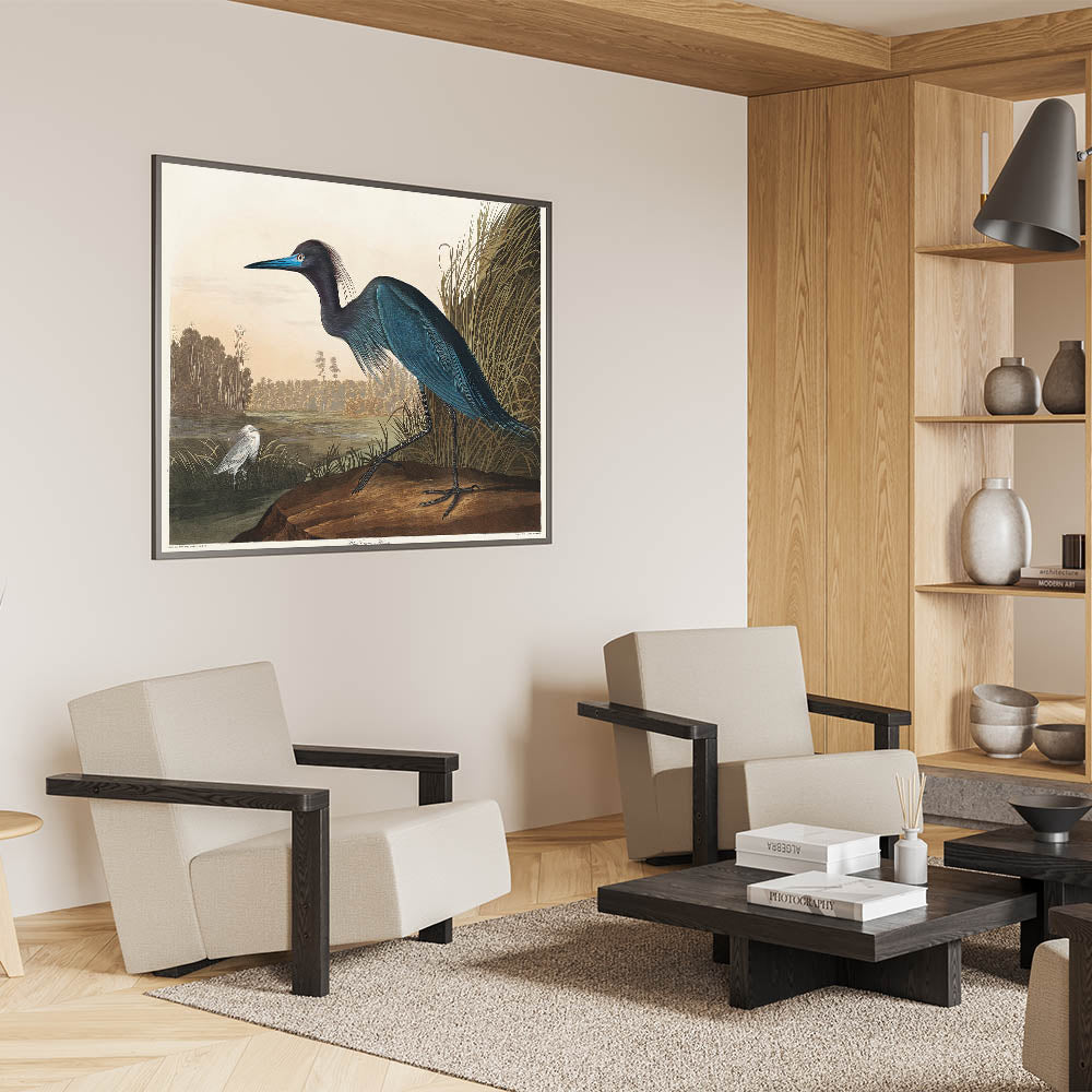 Bring the elegance of Romanticism to your home with this stunning wall art featuring the "Blue Crane or Heron," inspired by John James Audubon's Birds of America (1827). This masterpiece captures the Romantic era’s love for nature and emotional expression through intricate details and soft yet vibrant hues. Perfect for creating a serene atmosphere in any space, this artwork reflects the beauty of historical Romanticism.