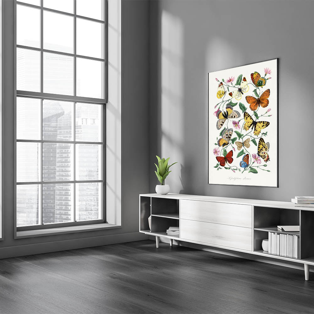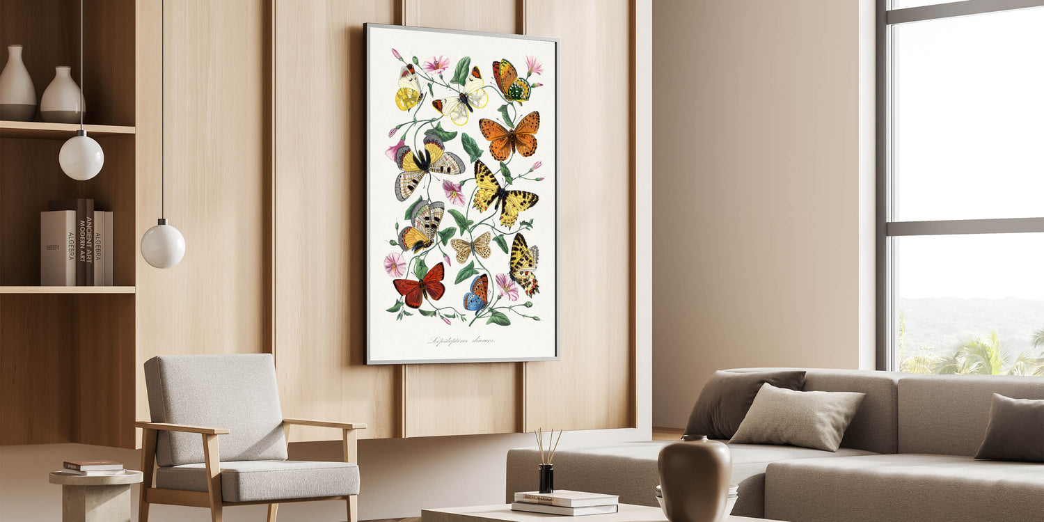 - Add a touch of Romanticism style wall art to your décor with this enchanting piece. Its combination of colorful butterflies and delicate florals makes it a standout focal point, offering elegance and historical significance to your home.
