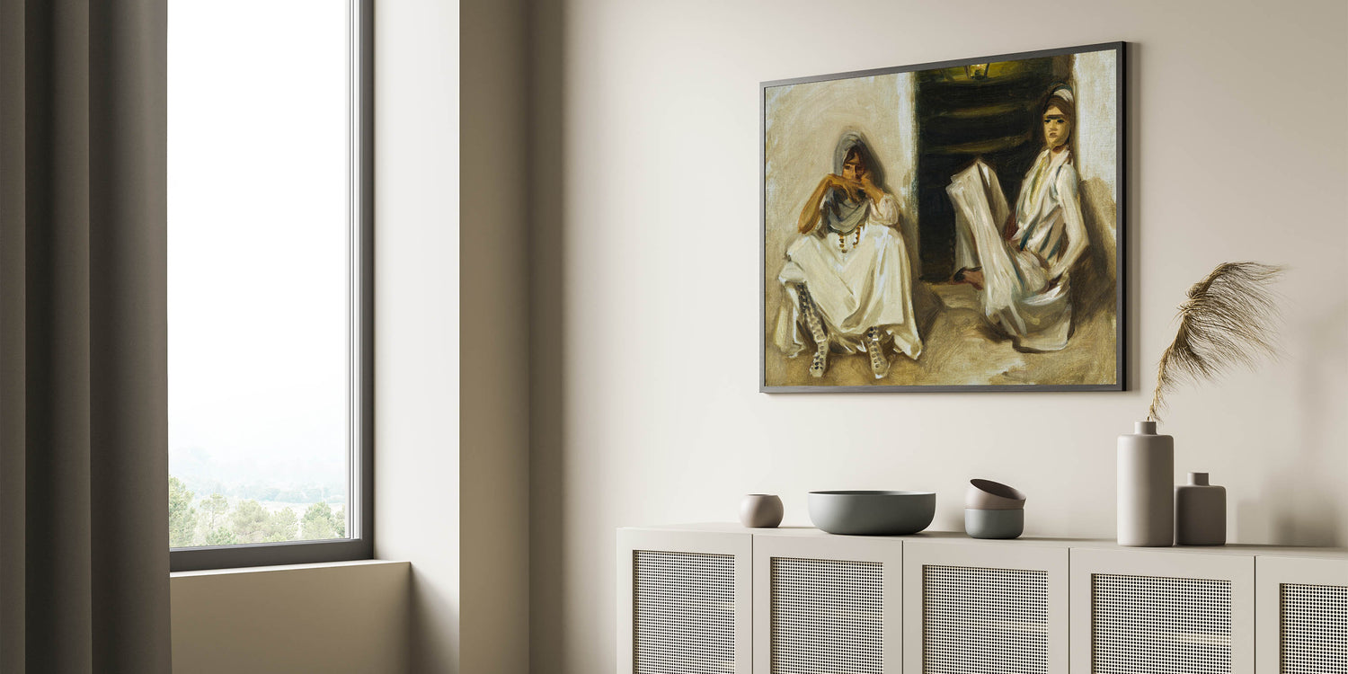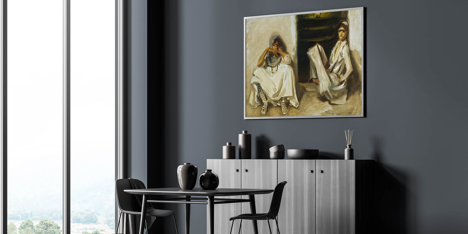 This exquisite piece, "Two Arab Women" by John Singer Sargent, captures the essence of Romanticism through its emotional depth and cultural storytelling. Rendered in soft brushstrokes, the painting depicts two women in quiet contemplation, evoking themes of introspection and resilience. Perfect for art lovers seeking meaningful pieces, this artwork adds a sense of history and elegance to any space.