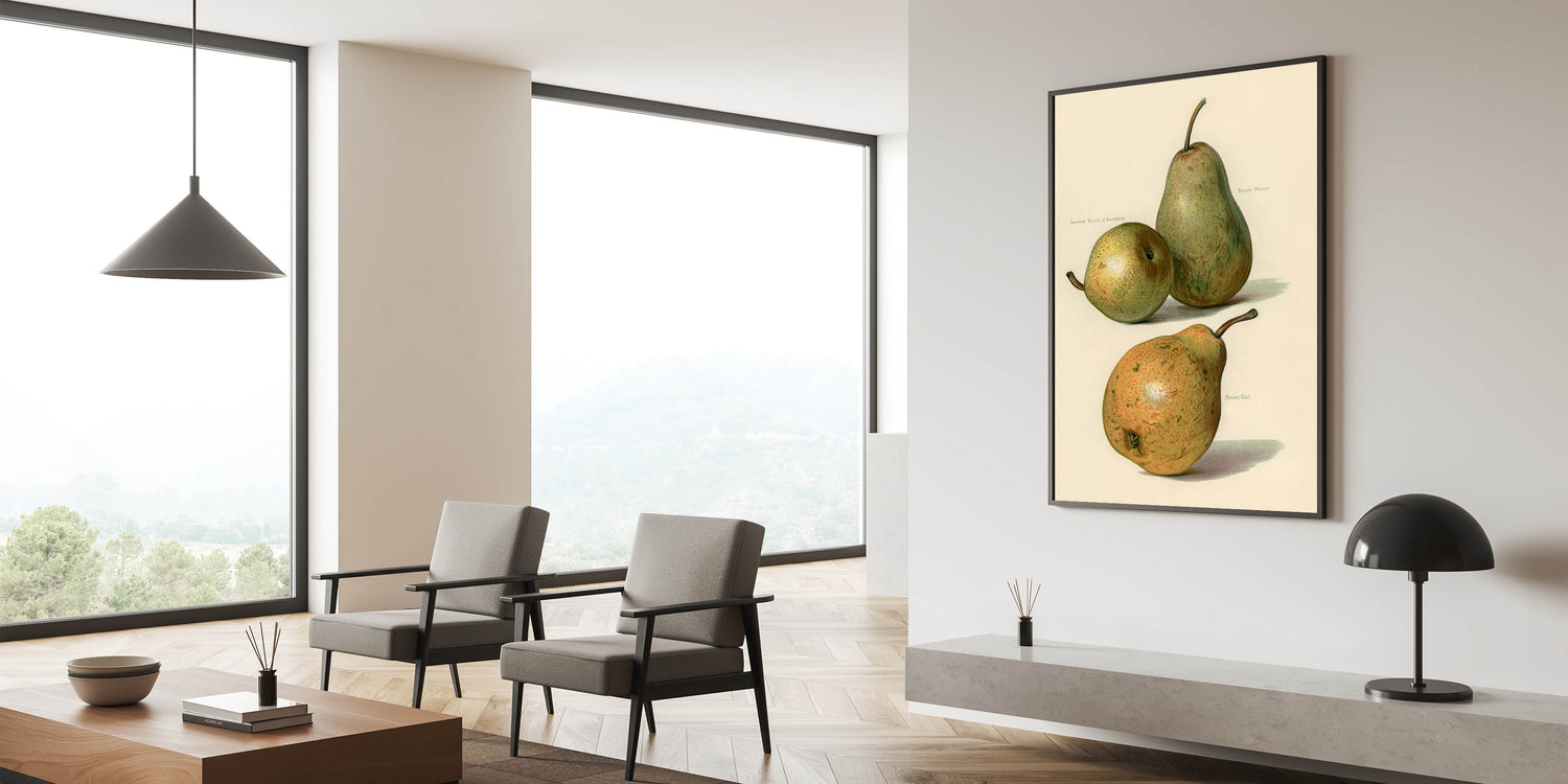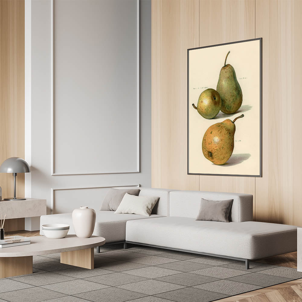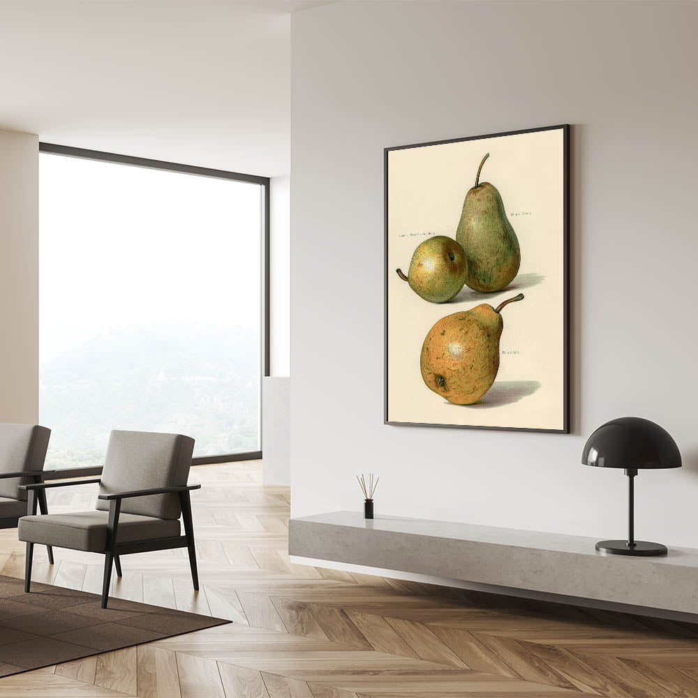 Celebrate the beauty of nature with this exquisite realism art print, showcasing a botanical illustration of three pears in rich, lifelike detail. This fine art realism piece captures the subtle textures, soft tones, and delicate highlights of the fruit, making it a timeless choice for kitchens, dining areas, or any space that values natural elegance. The artwork’s detailed precision reflects classical botanical studies, offering a blend of sophistication and warmth.