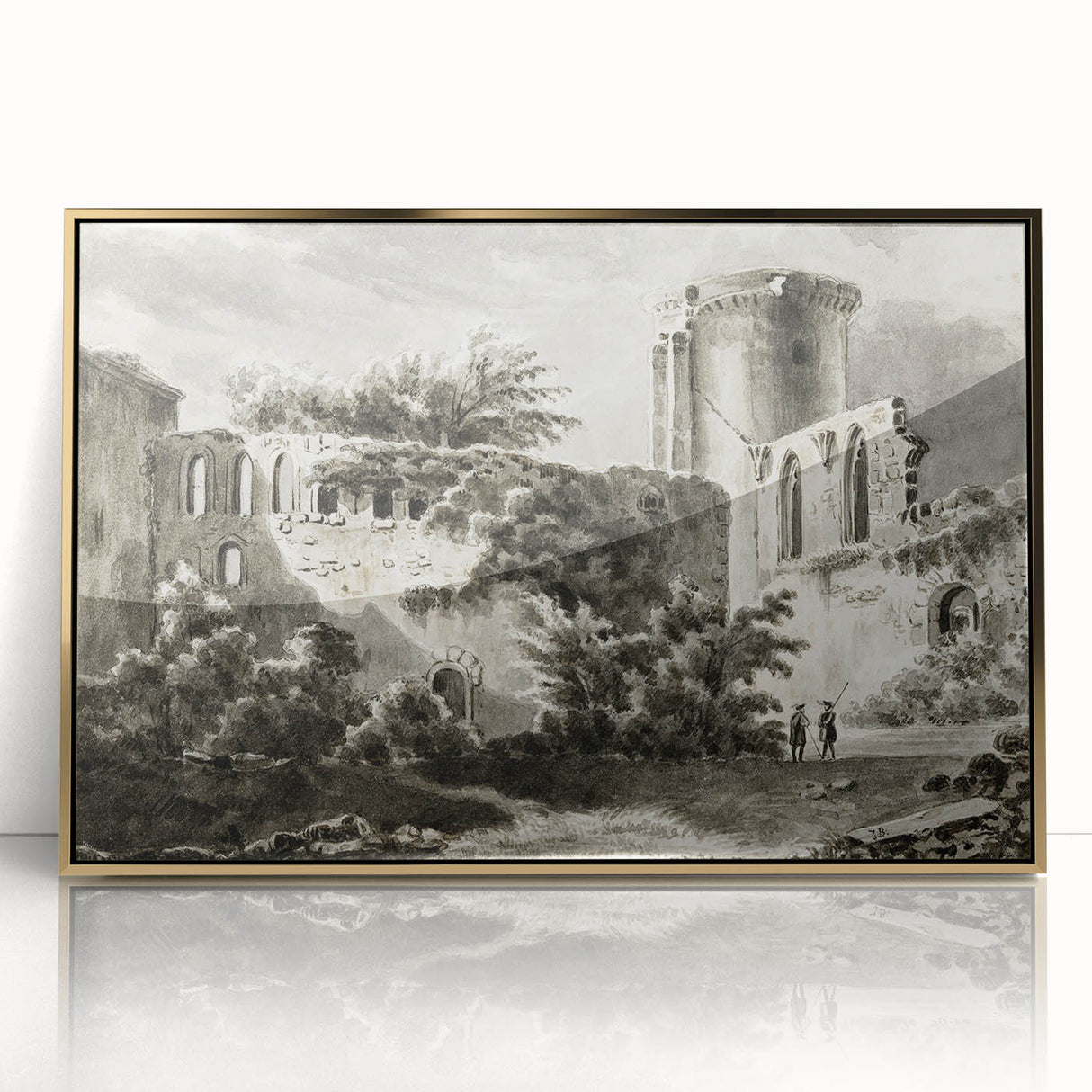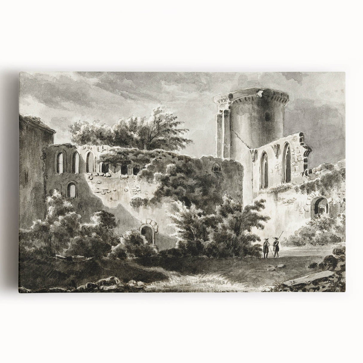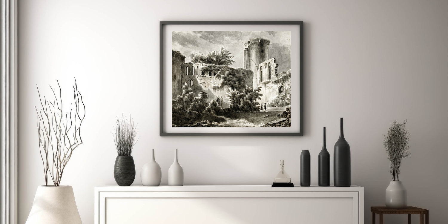 Step back in time with this captivating realism art print, featuring a detailed depiction of the courtyard ruins of the historic Château de Botwel. The monochromatic tones and intricate shading bring out the architectural elegance of this forgotten castle, making it a perfect choice for history buffs and art lovers alike. This classical realism canvas art evokes a sense of mystery and nostalgia, ideal for study rooms, libraries, or traditional interiors.