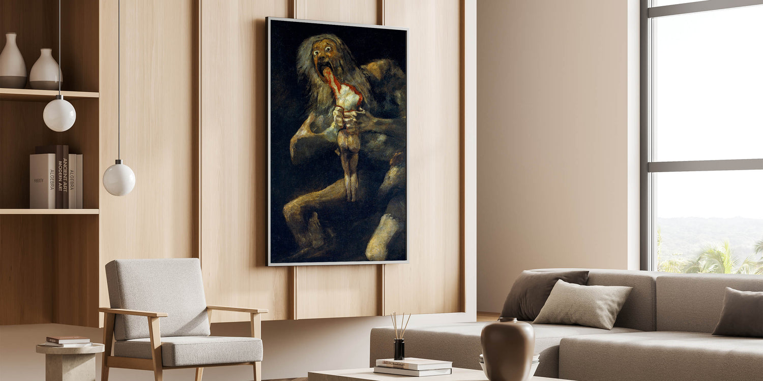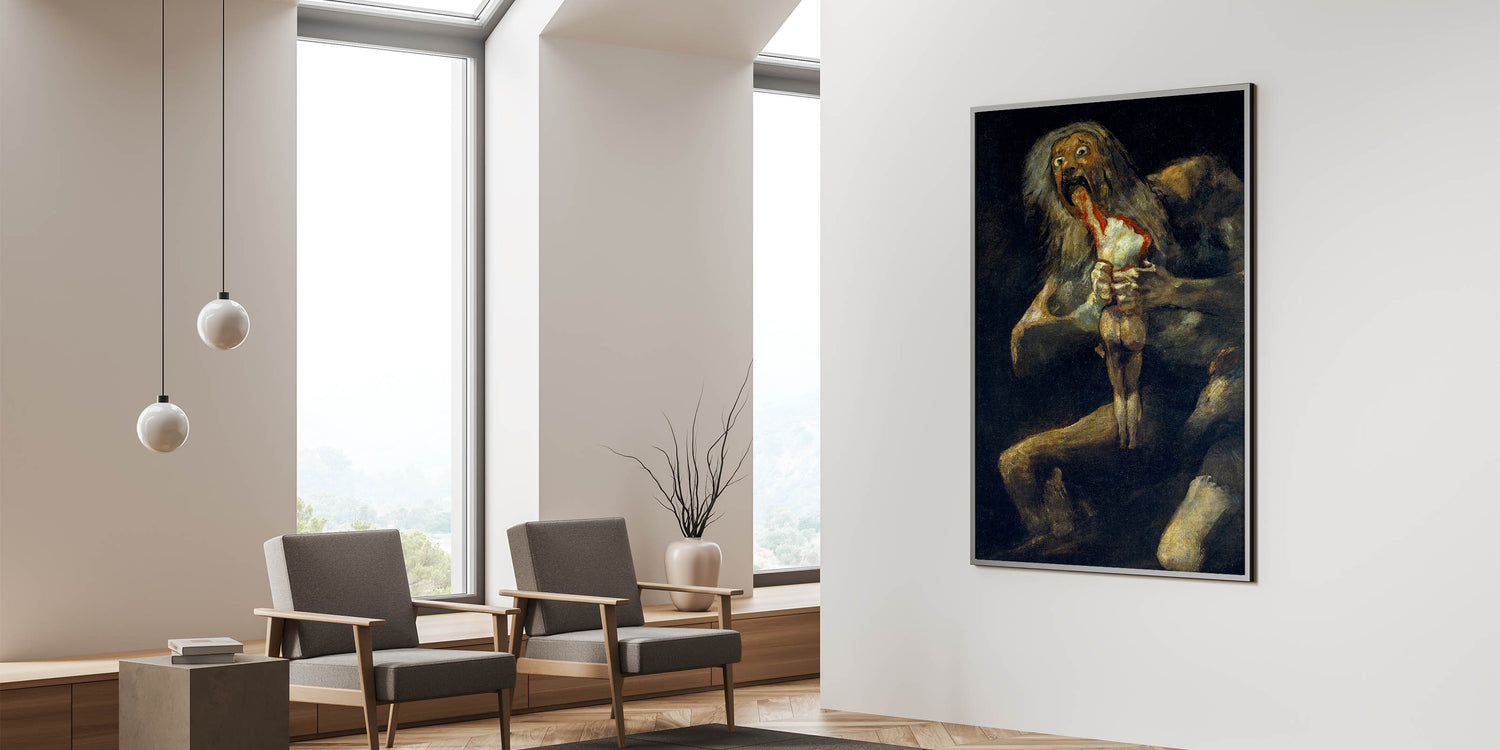 Bring the depth and intensity of Romanticism style wall art into your space with Goya’s unforgettable portrayal of Saturn. This piece offers a powerful and thought-provoking focal point for your home or gallery.