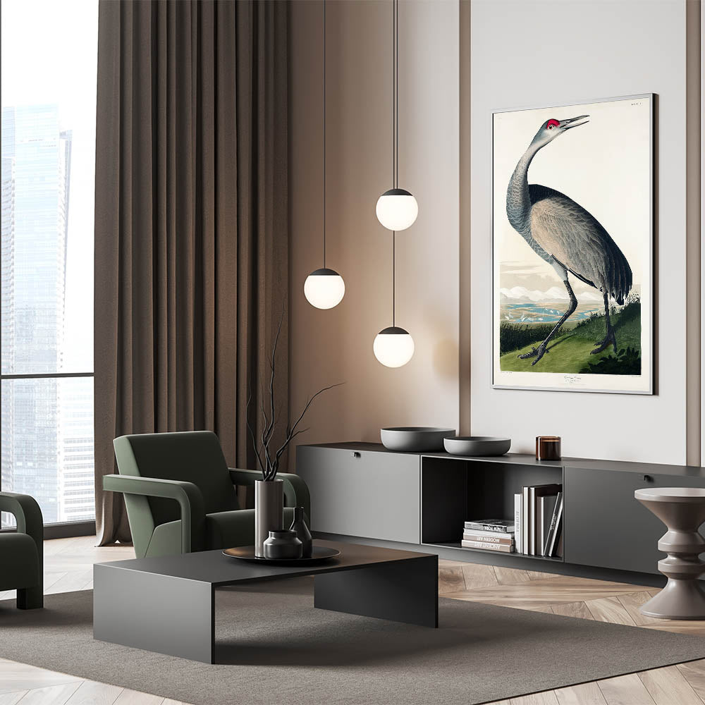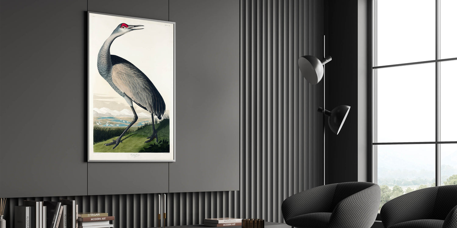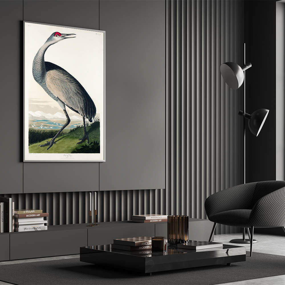 Experience the grandeur of Romanticism with this remarkable illustration of the Hooping Crane, originally featured in John James Audubon's Birds of America (1827). This artwork perfectly encapsulates the Romanticism style, blending a fascination with nature's majesty and emotional expression. The intricate details of the crane's feathers, the serene landscape, and the vivid colors make it a standout piece for any art collection.