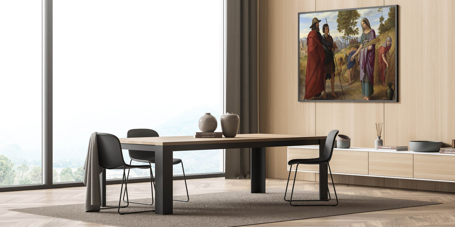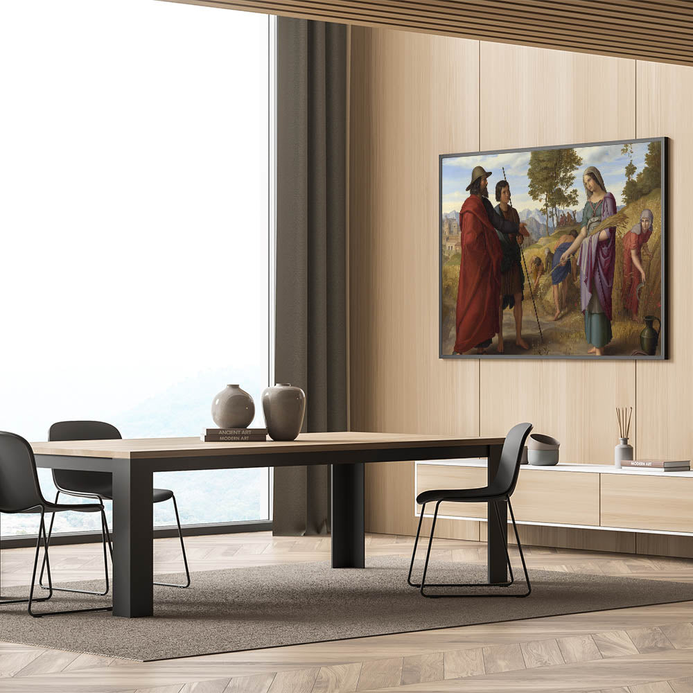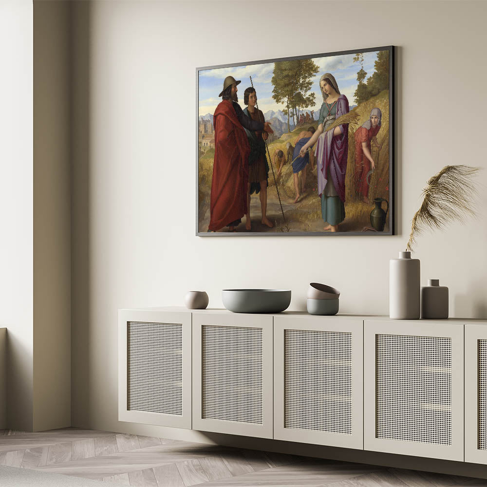 Celebrate the timeless elegance of Romanticism style wall art with Julius Schnorr von Carolsfeld's "Ruth in the Field of Boaz." This stunning masterpiece combines biblical storytelling with the Romantic era's signature emphasis on emotion and beauty. The vibrant composition depicts the iconic moment of Ruth gleaning in the fields, surrounded by golden wheat, lush greenery, and rolling mountains in the background. The interplay of light and color showcases the classic art of the Romantic era, making it a profound addition to any collection.