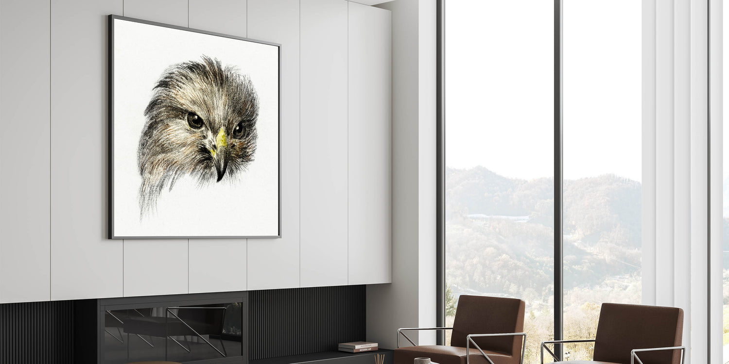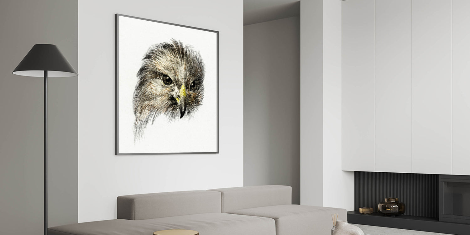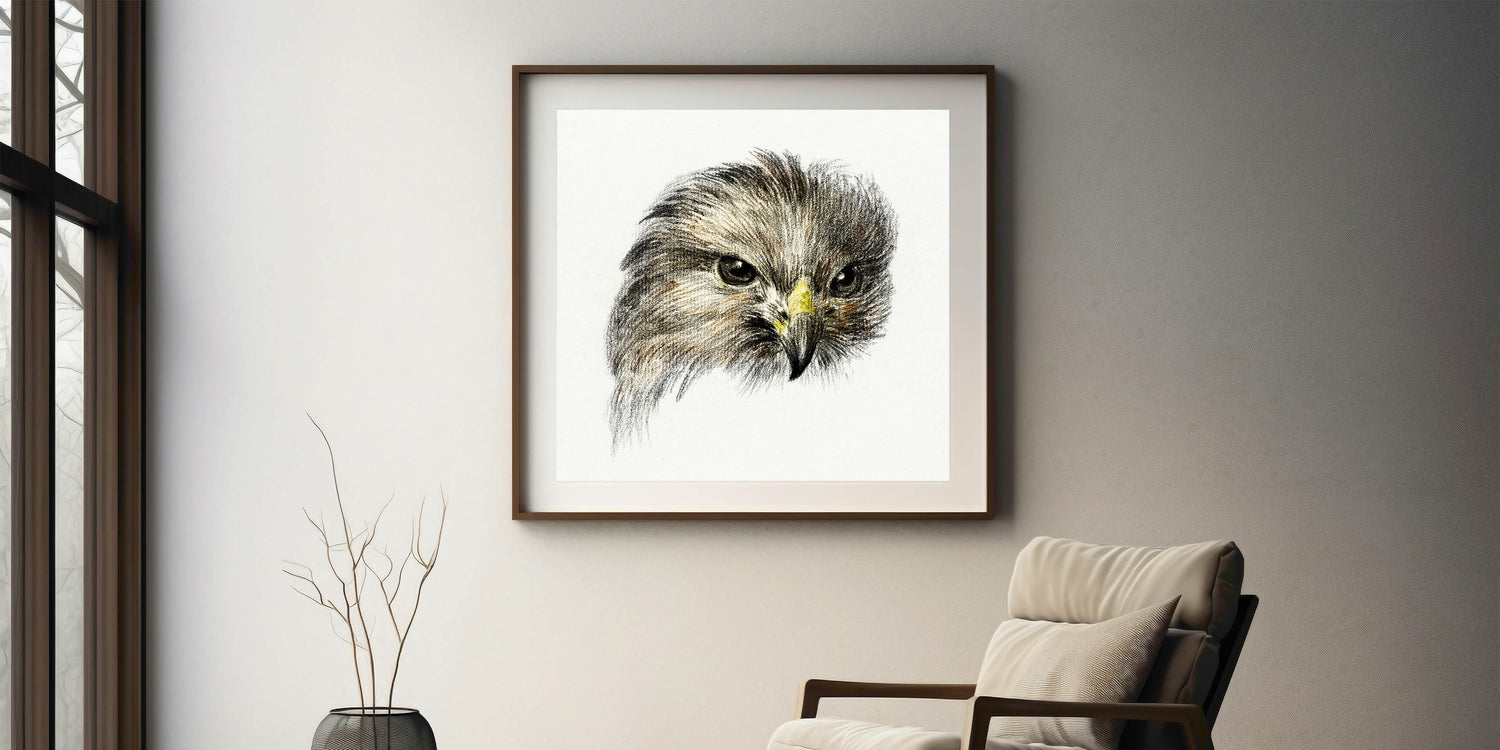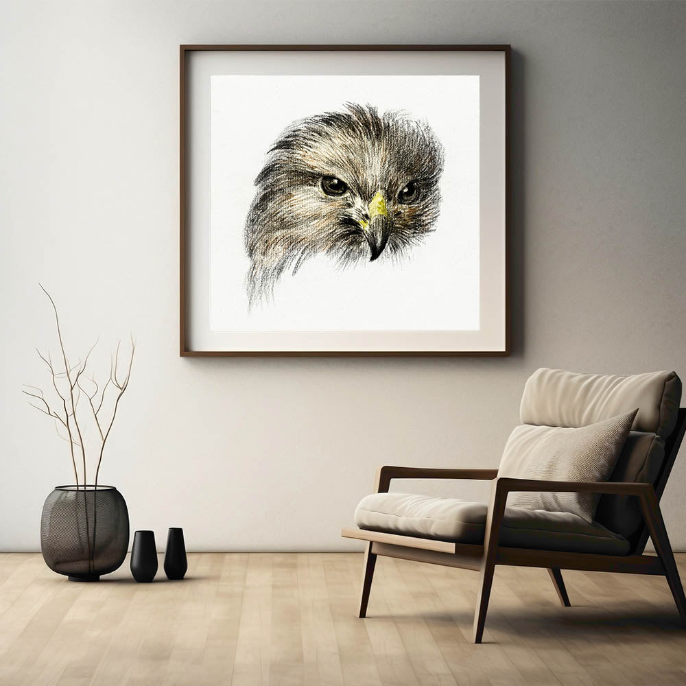 Celebrate the powerful elegance of Head of a Bird of Prey (1818) by Jean Bernard, an evocative Romantic-era masterpiece. This artwork focuses on the striking features of a bird of prey, capturing its intense gaze and intricate feather details with remarkable precision. The sketch-like quality and subtle use of color emphasize the raw beauty and strength of this majestic creature.