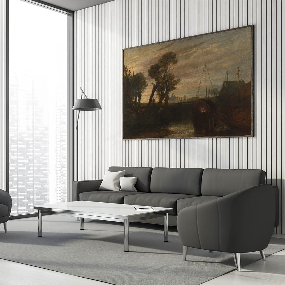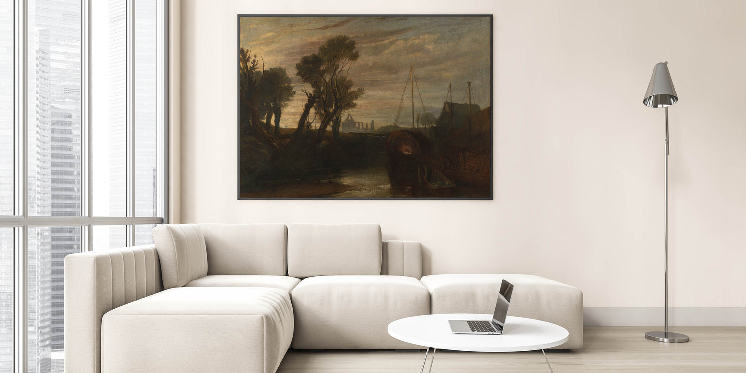 This mesmerizing depiction of Newark Abbey captures the essence of Romanticism art, blending architectural ruins with the tranquil beauty of nature. Painted in the soft hues of twilight, the artwork exudes an air of mystery and nostalgia, reflecting the Romantic era's fascination with history and the sublime. The serene riverbank and shadowy trees further enhance its atmospheric quality, making it a perfect addition to any art collection.