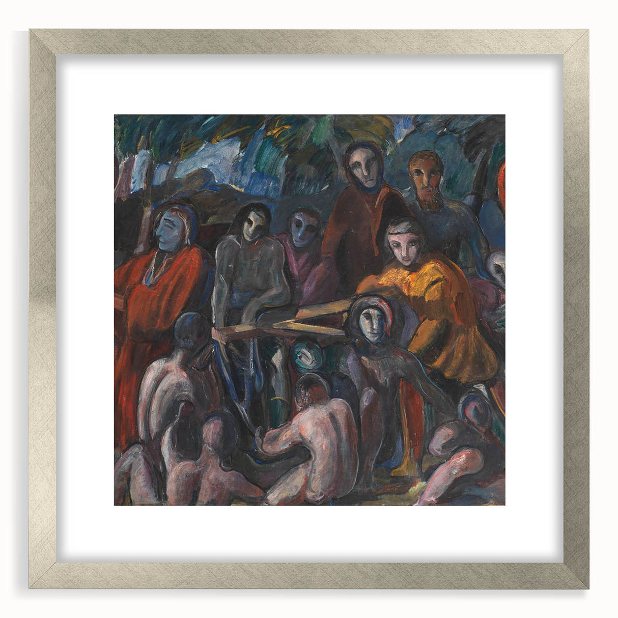 Explore the emotional depth and complex imagery of Jens Adolf Jerichau’s The Road to Golgotha. This powerful painting, filled with dynamic figures and intense color contrasts, captures a pivotal moment with a raw, expressive style that engages viewers immediately. The artwork is a testament to Jerichau's skill in portraying human emotions and the dramatic use of light and shadow.