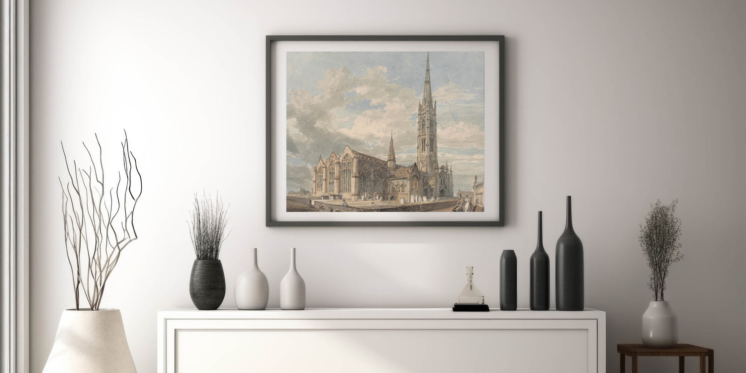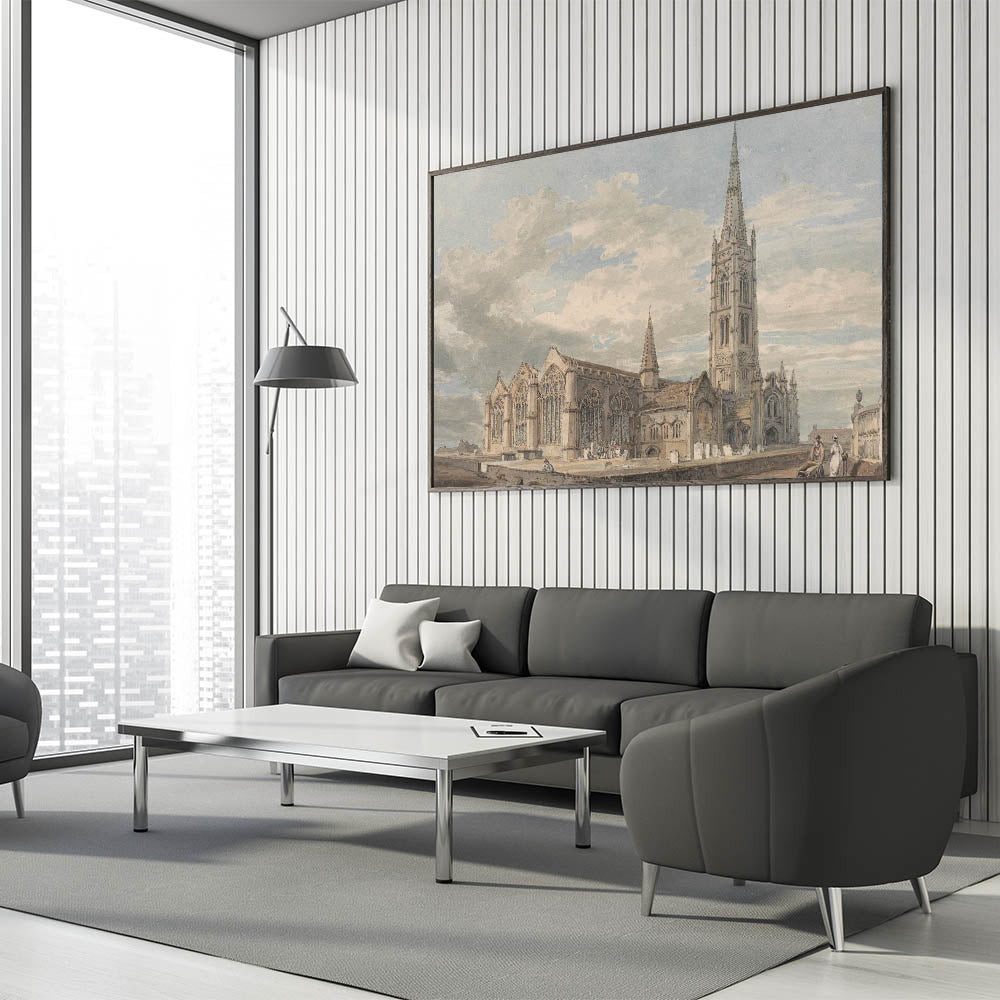 Celebrate the architectural beauty and historic elegance of the Romantic era with this exquisite artwork, "North-East View of Grantham Church, Lincolnshire." This masterpiece captures the grandeur of Gothic architecture under a serene sky, showcasing the Romantic fascination with timeless structures and their cultural significance. The delicate detailing and soft palette evoke a sense of tranquility and admiration for the historic craftsmanship.