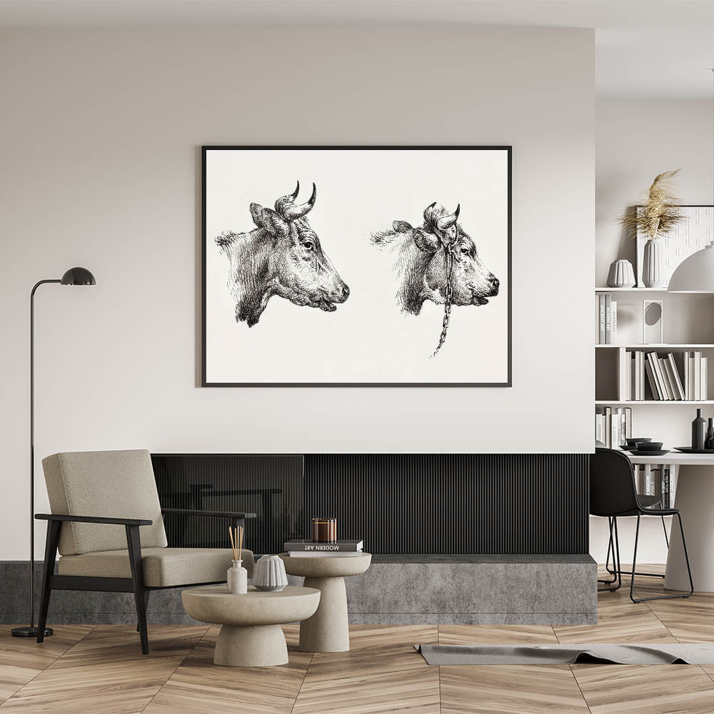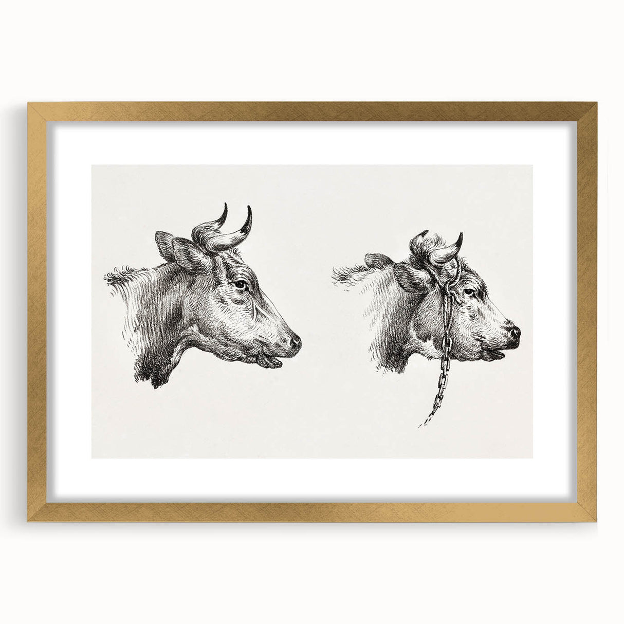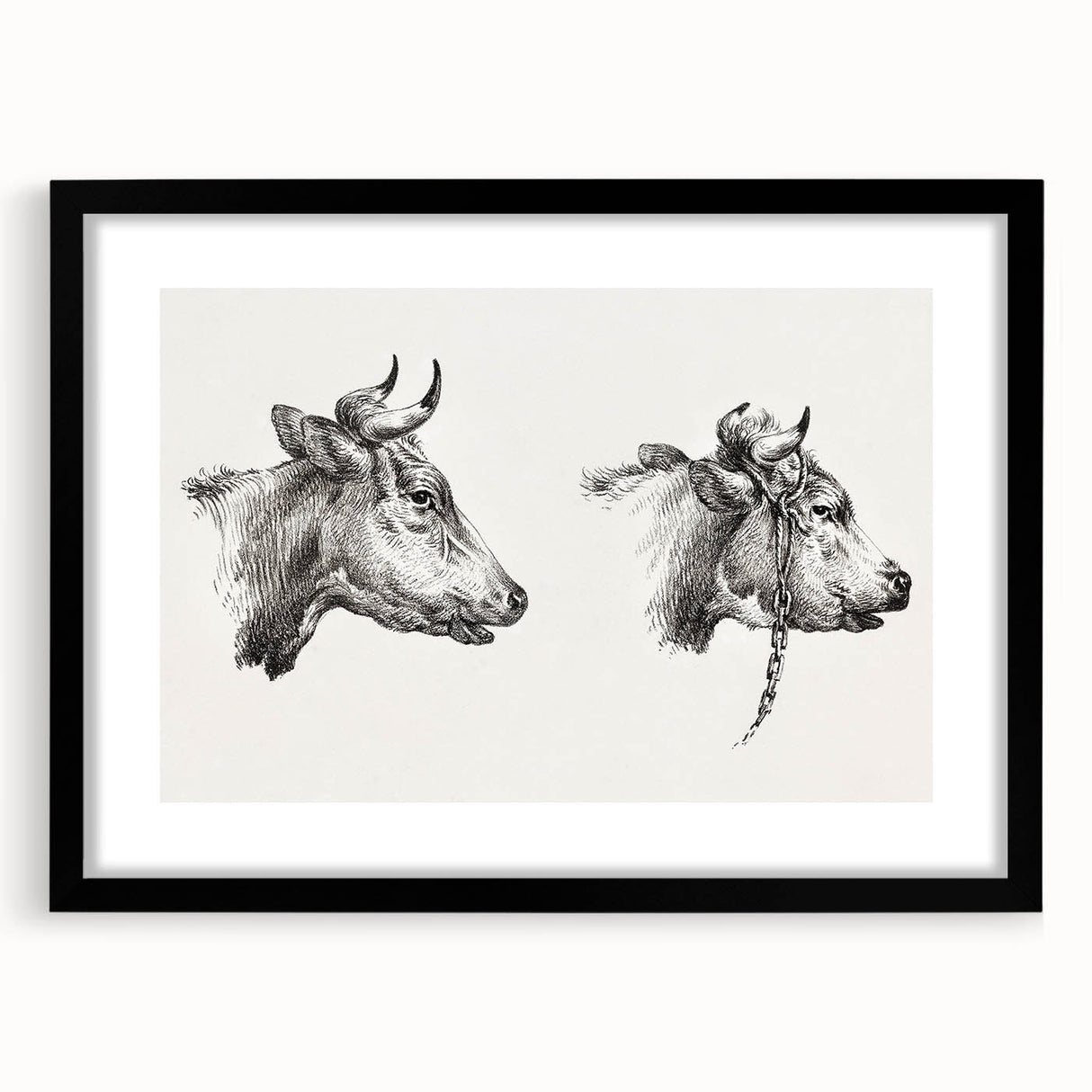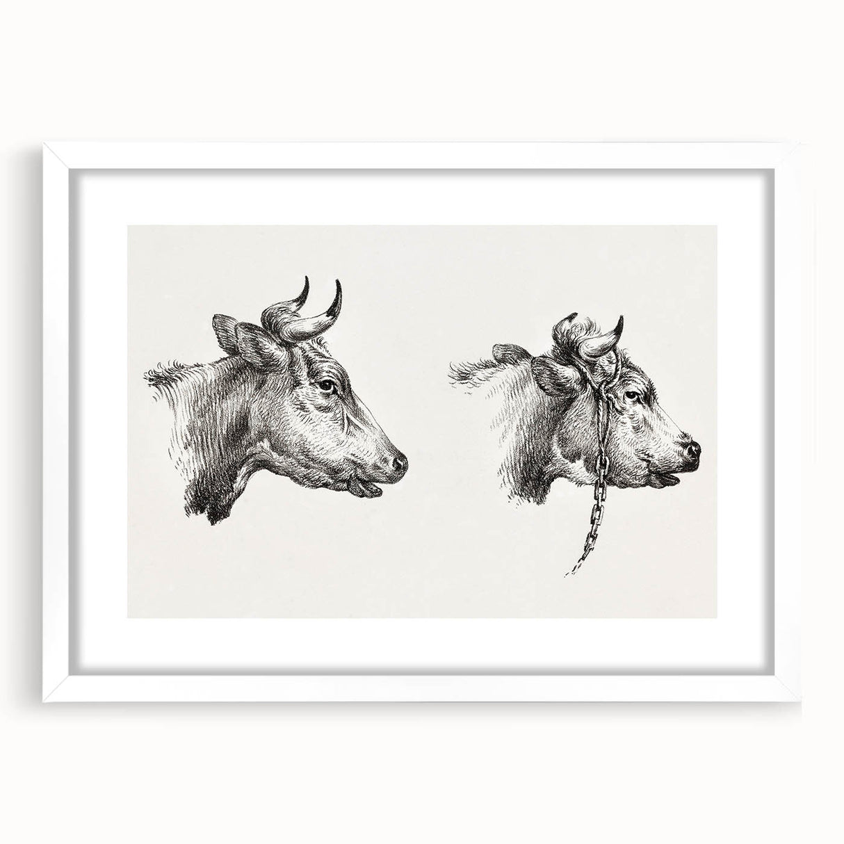 Realism Animal Study Art Print - Two Bull Heads by Jean Bernard