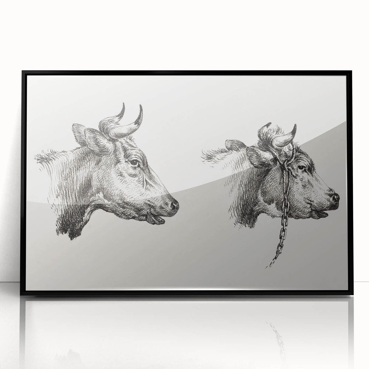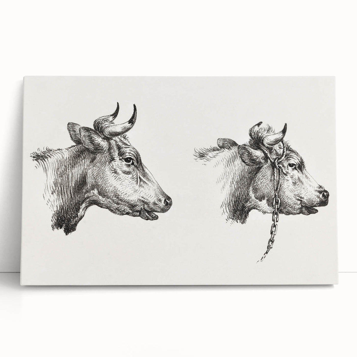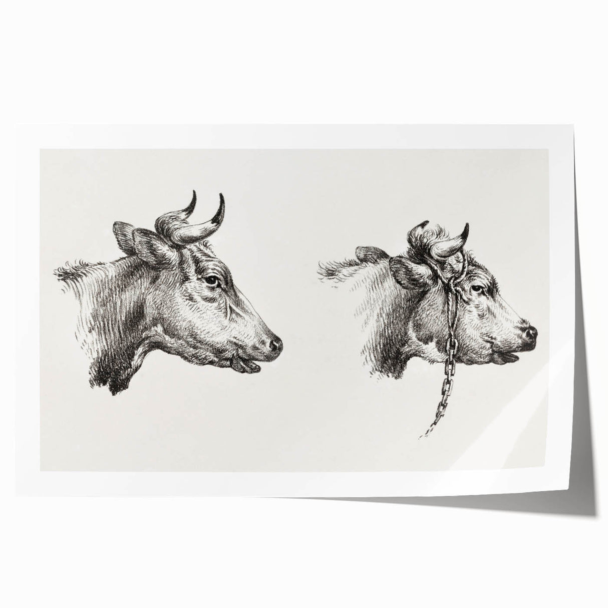 Realism Animal Study Art Print - Two Bull Heads by Jean Bernard