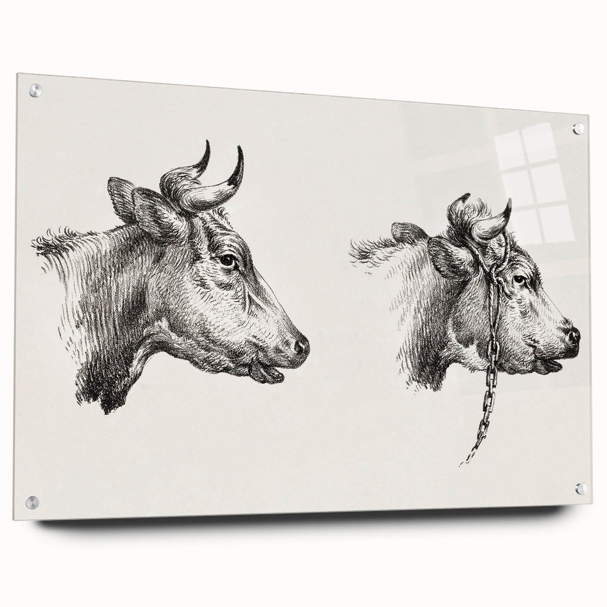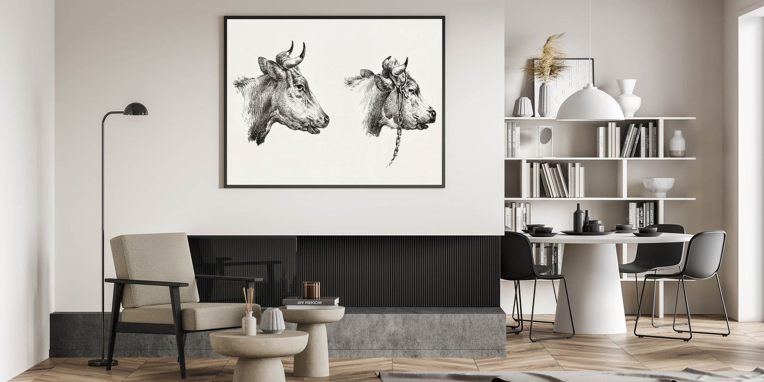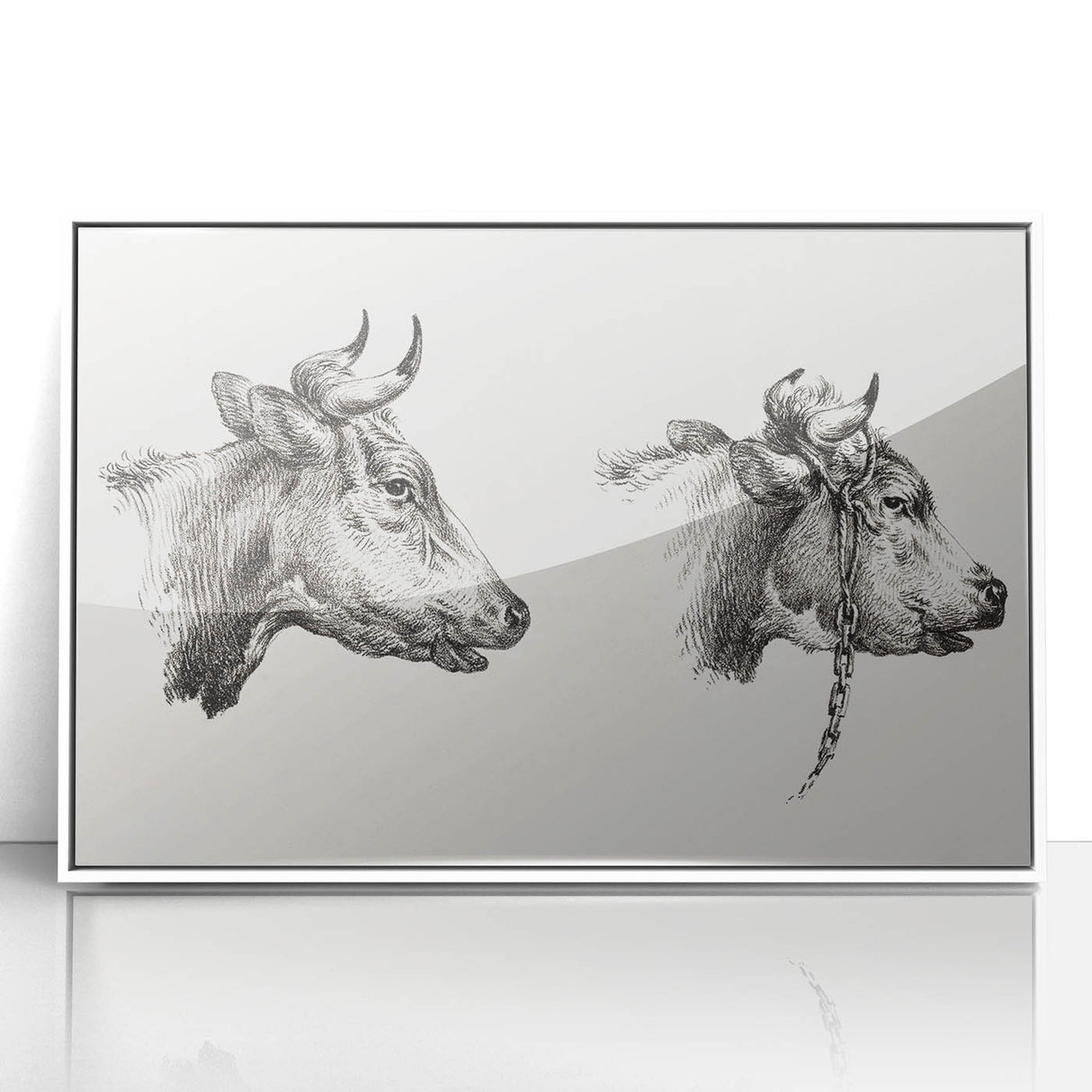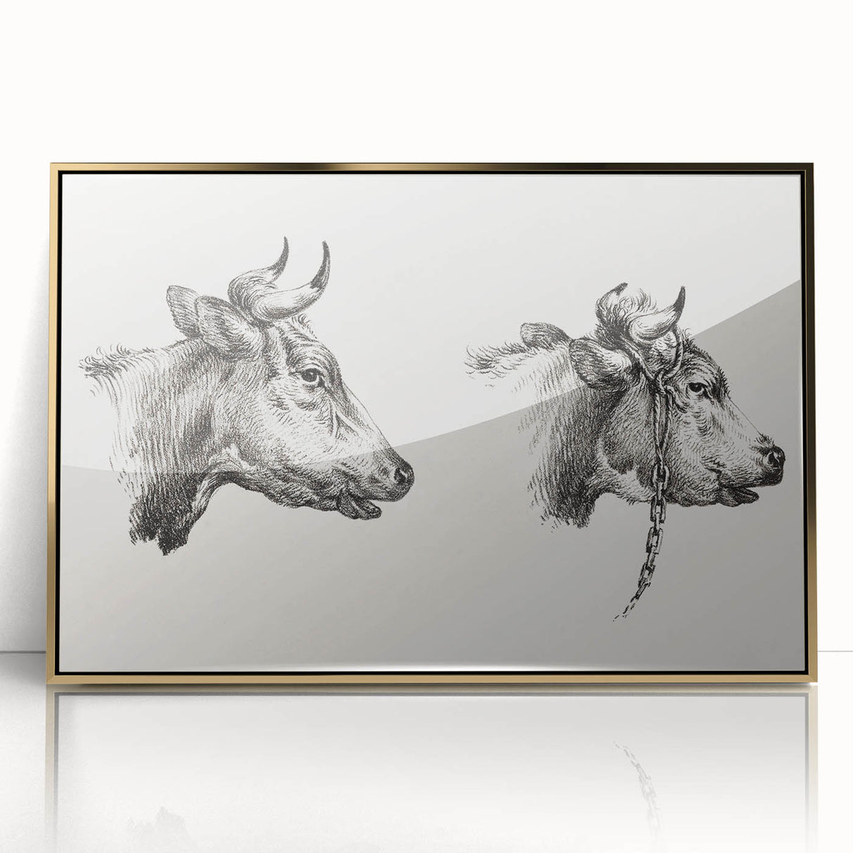 Realism Animal Study Art Print - Two Bull Heads by Jean Bernard